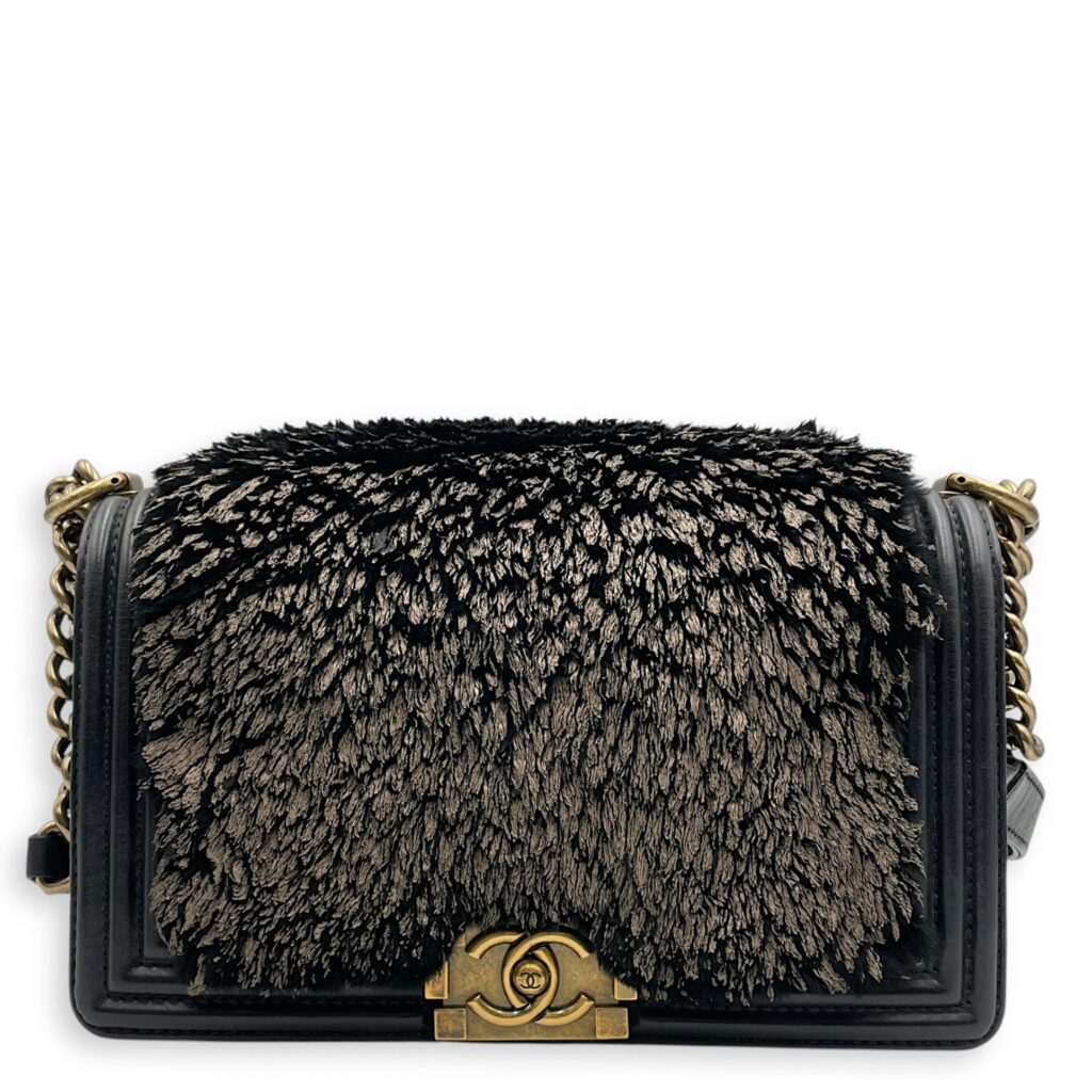 Fur Boy Old Medium Black Shoulder Bag in Fur, Gold hardware