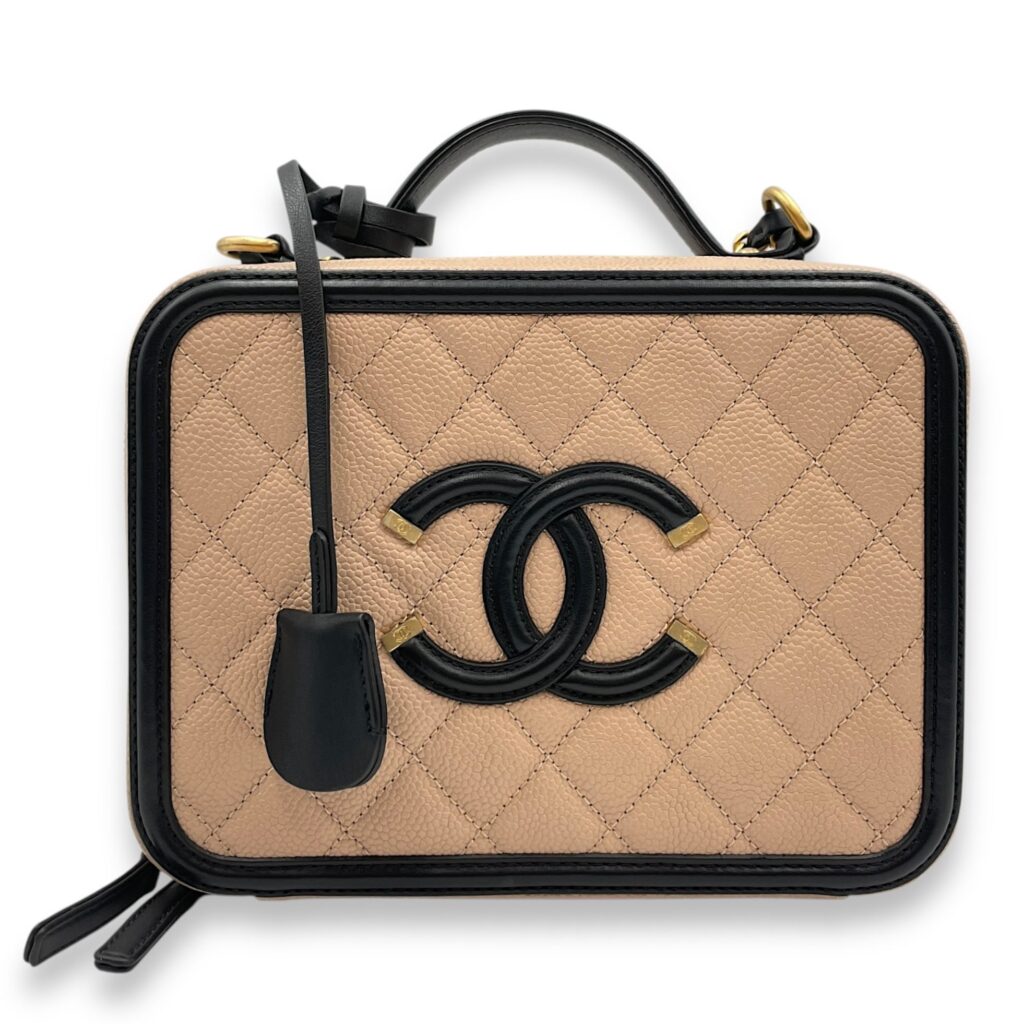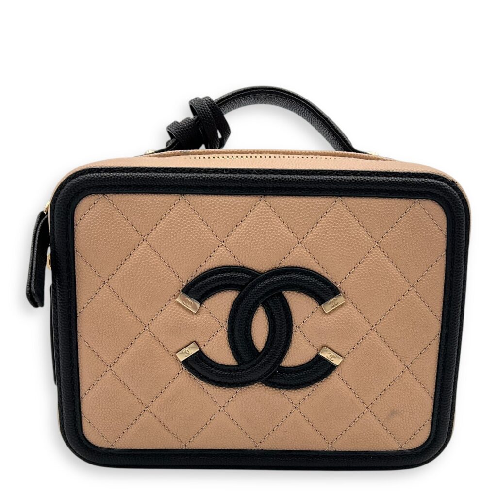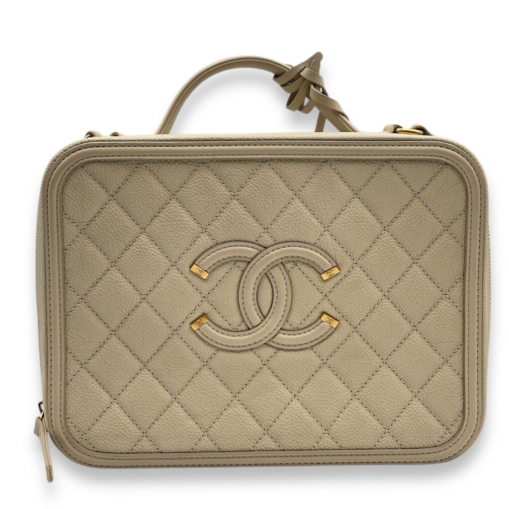 Filigree Vanity 24x18x9.5cm Beige Shoulder Bag in Caviar, Gold hardware