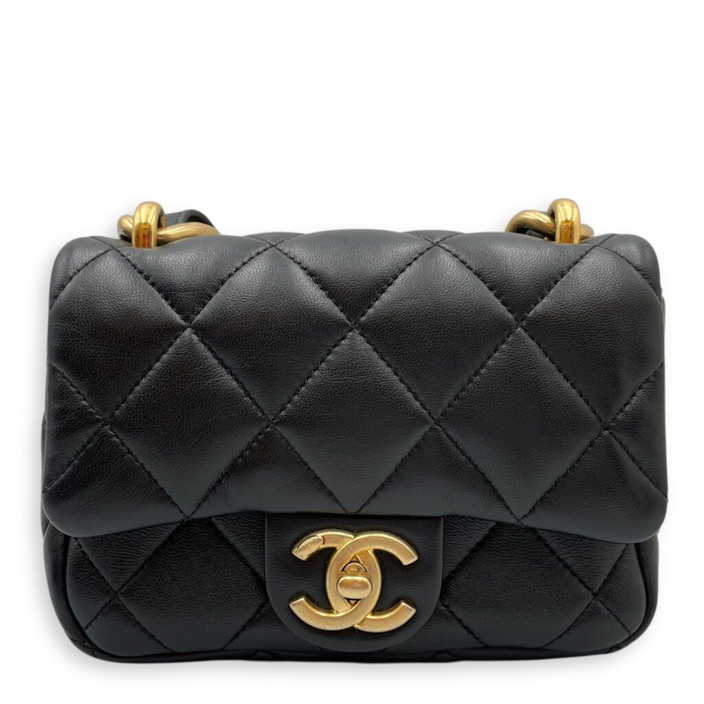 Flap Mini Black Shoulder Bag in Lambskin, Gold hardware