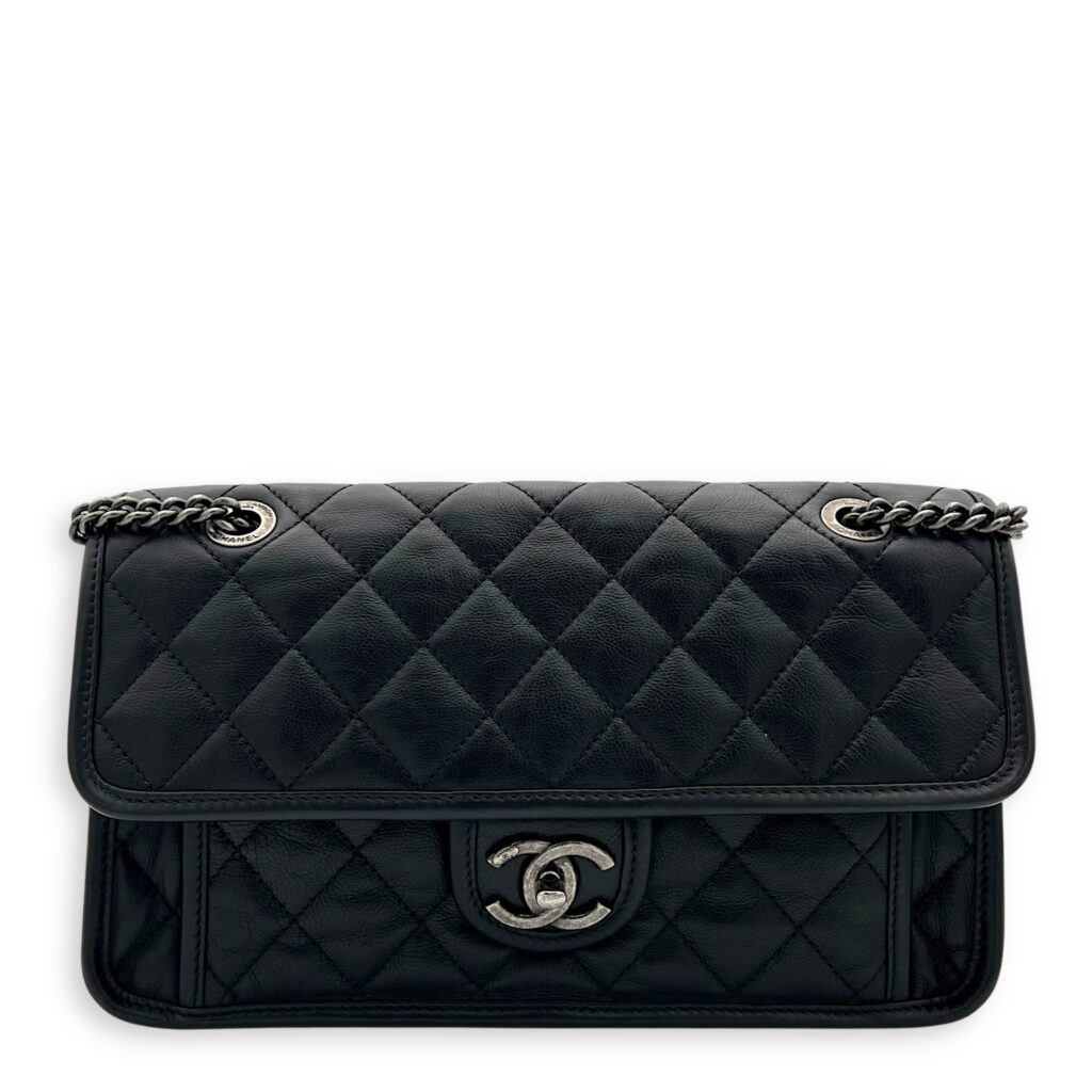 French Riviera Black Shoulder Bag in Calfskin, Gunmetal hardware