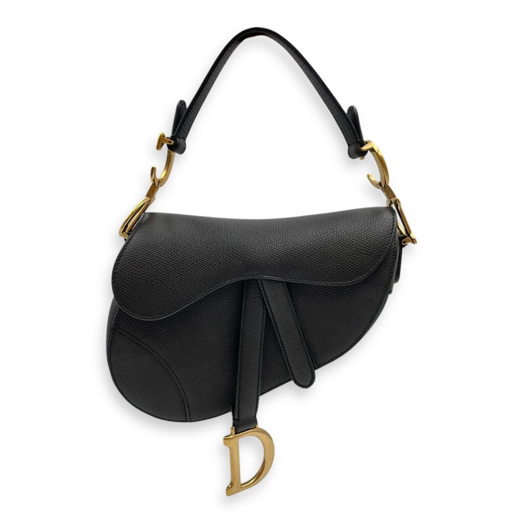 Saddle Mini Black Shoulder Bag in Calfskin, Gold hardware