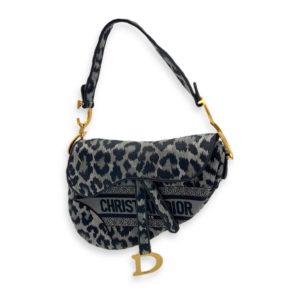 Saddle Grey Shoulder Bag in Jacquard, Gold hardware