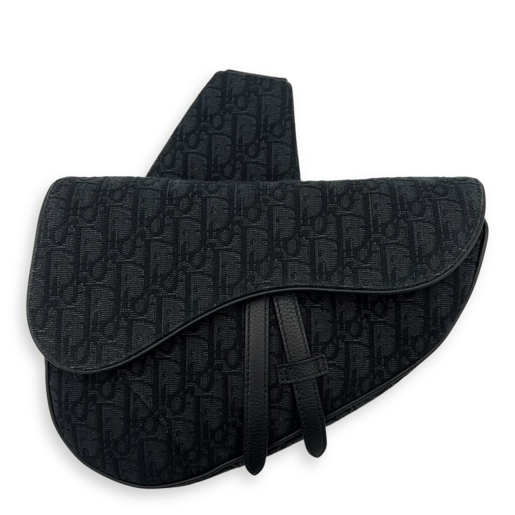 Saddle Crossbody Bag Black in Jacquard, Silver hardware