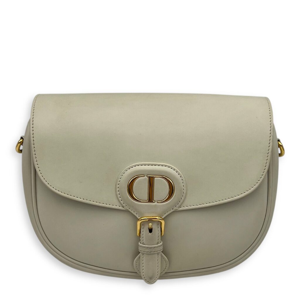 Bobby Medium White Crossbody Bag in Calfskin, Gold hardware