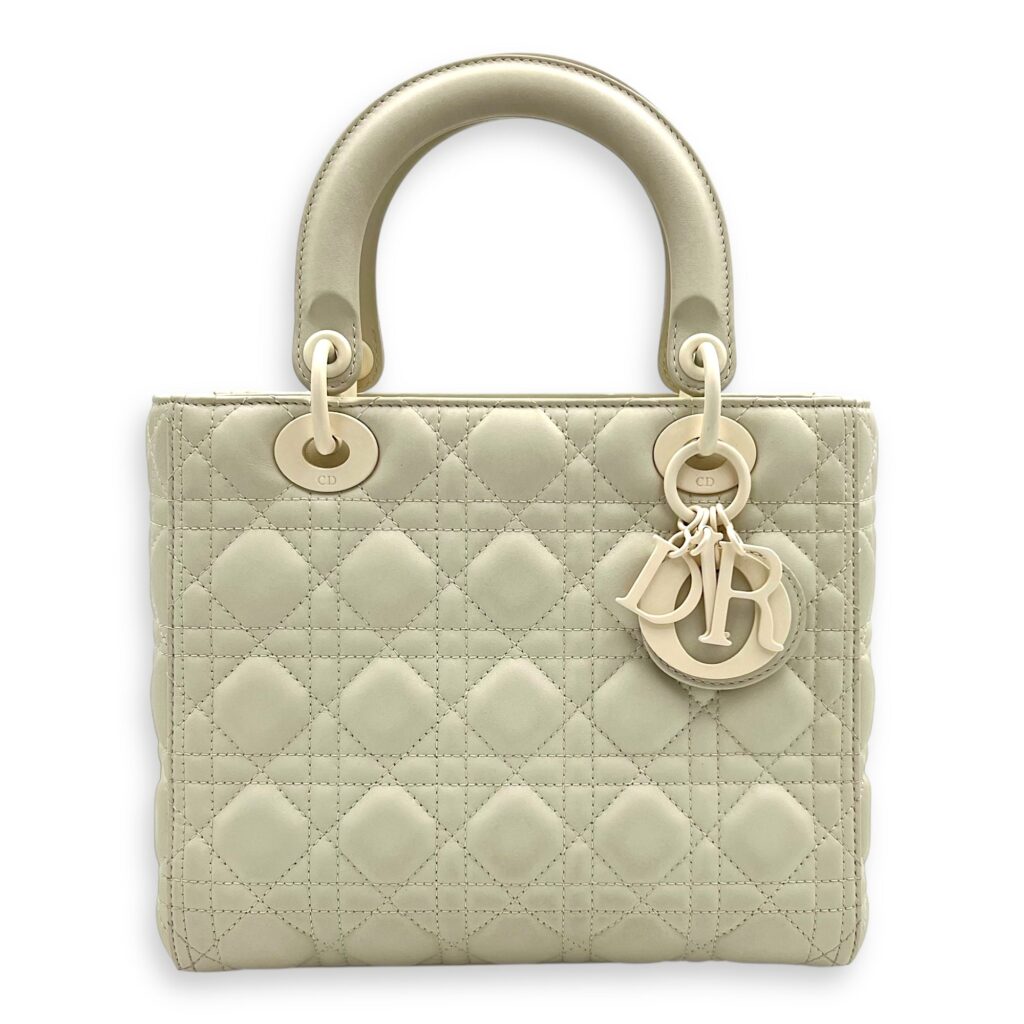 Lady Dior Top Handle Bag Medium White in Lambskin, Ultramatte hardware
