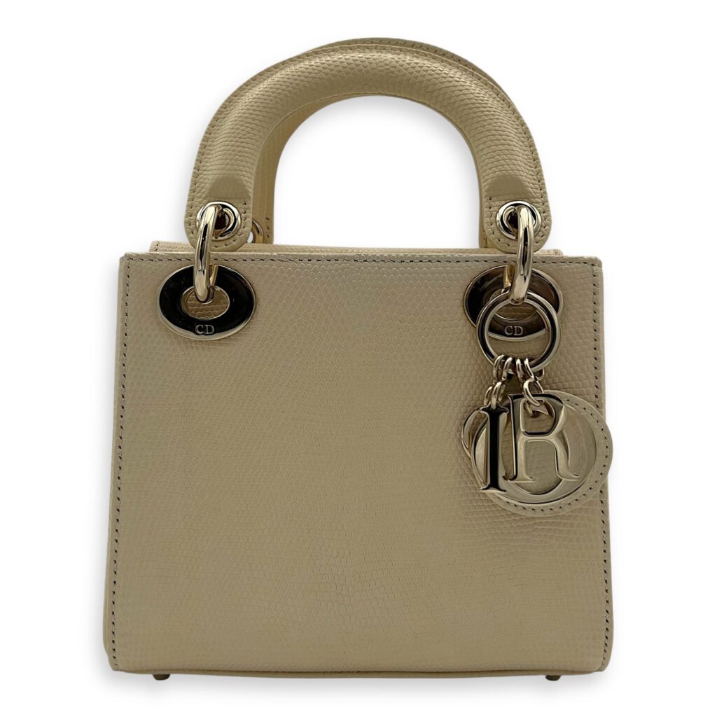 Lady Dior Top Handle Bag Mini Cream in Lizard, Light Gold hardware