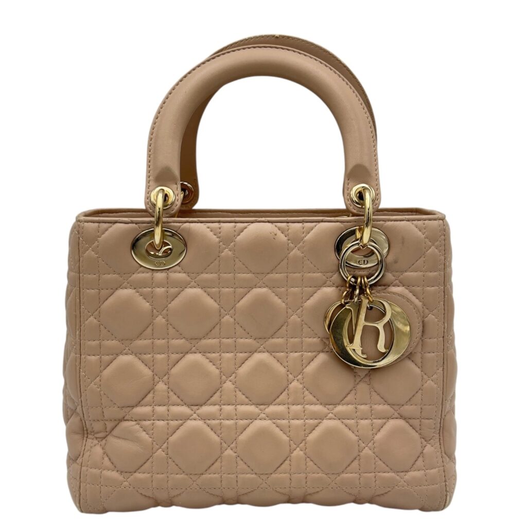Lady Dior Top Handle Bag Beige in Lambskin, Gold hardware