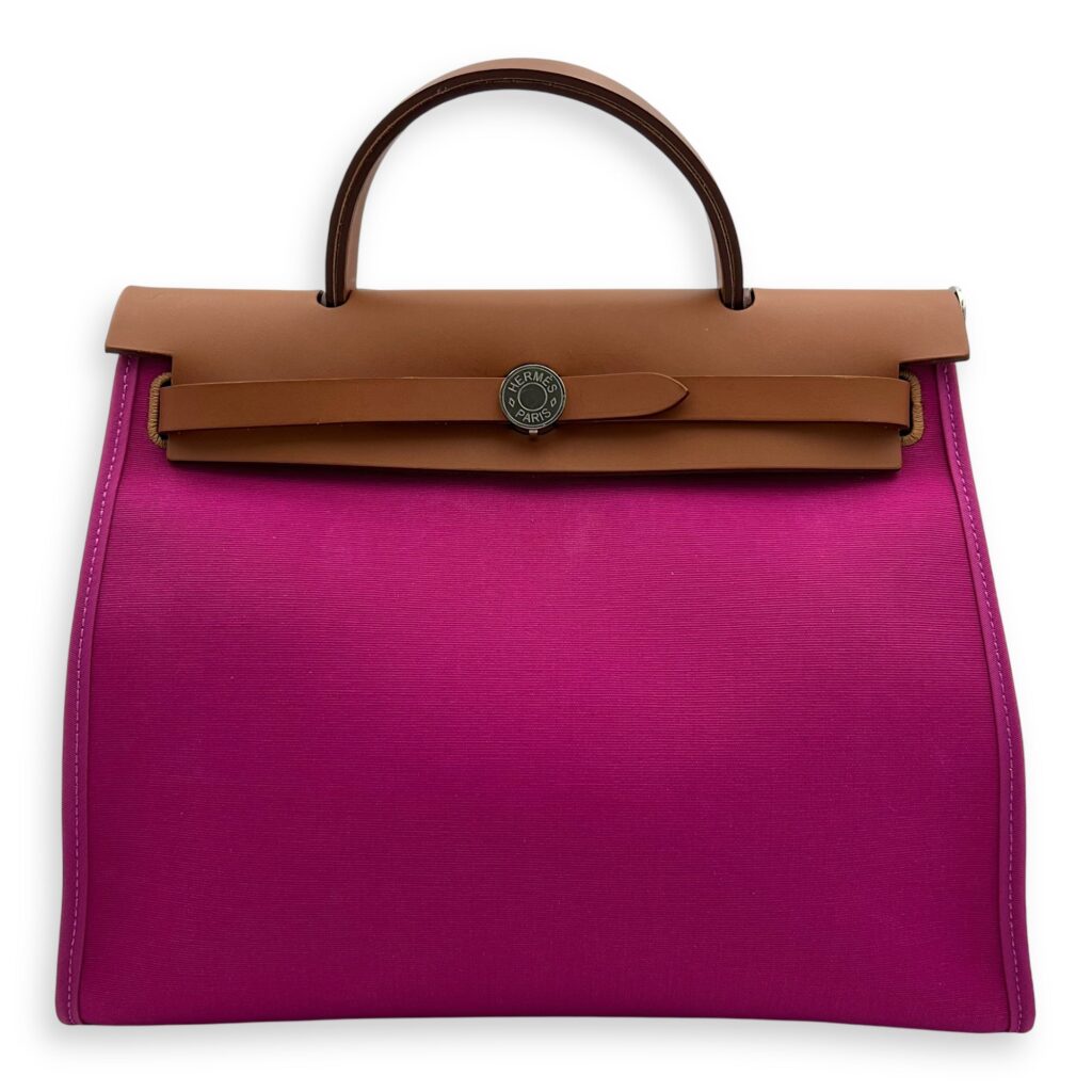 Herbag 31 Rose Pourpre Fauve Shoulder Bag in Canvas, Palladium hardware