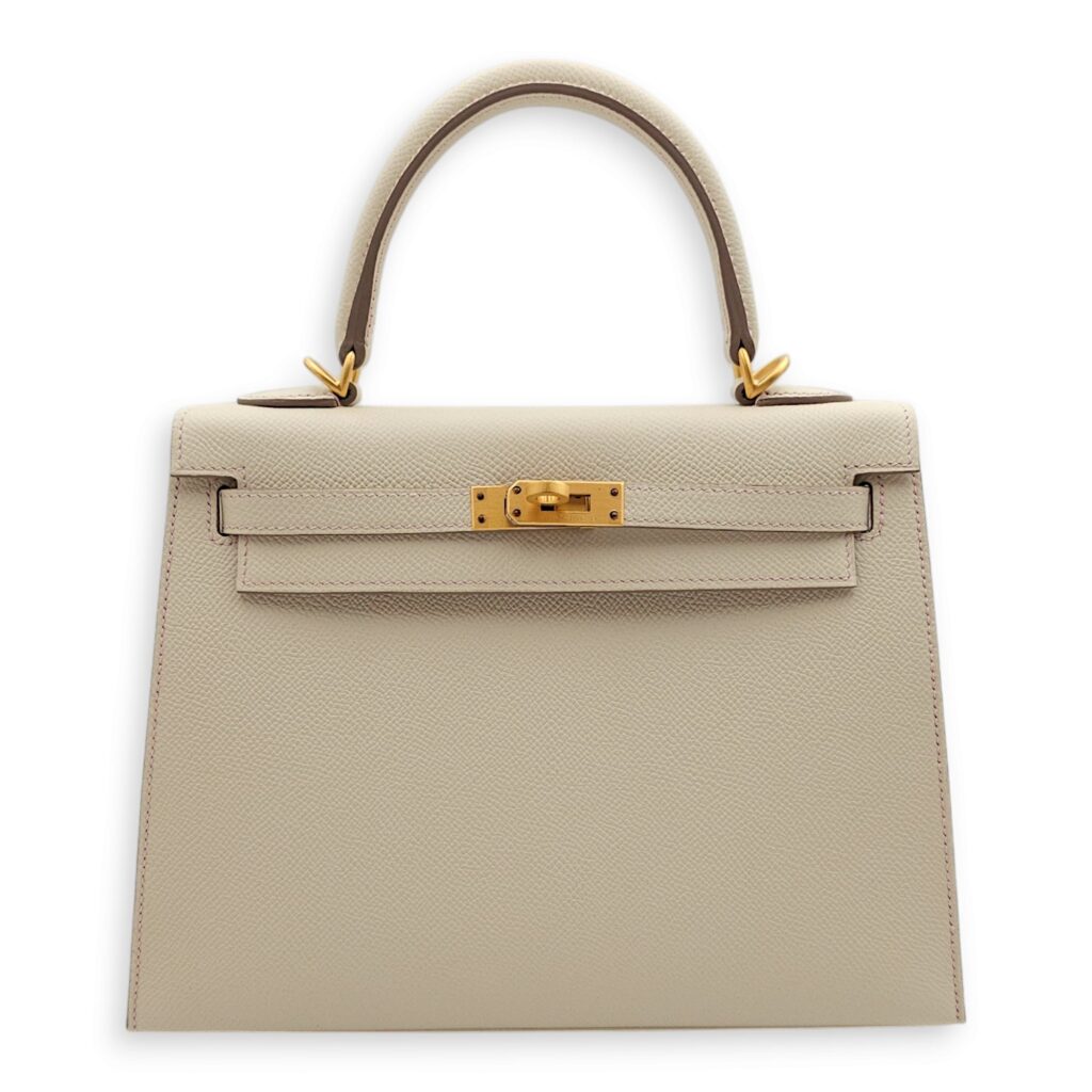 HSS Sellier Kelly 25 Nata/Gris Perle in Epsom, Gold hardware
