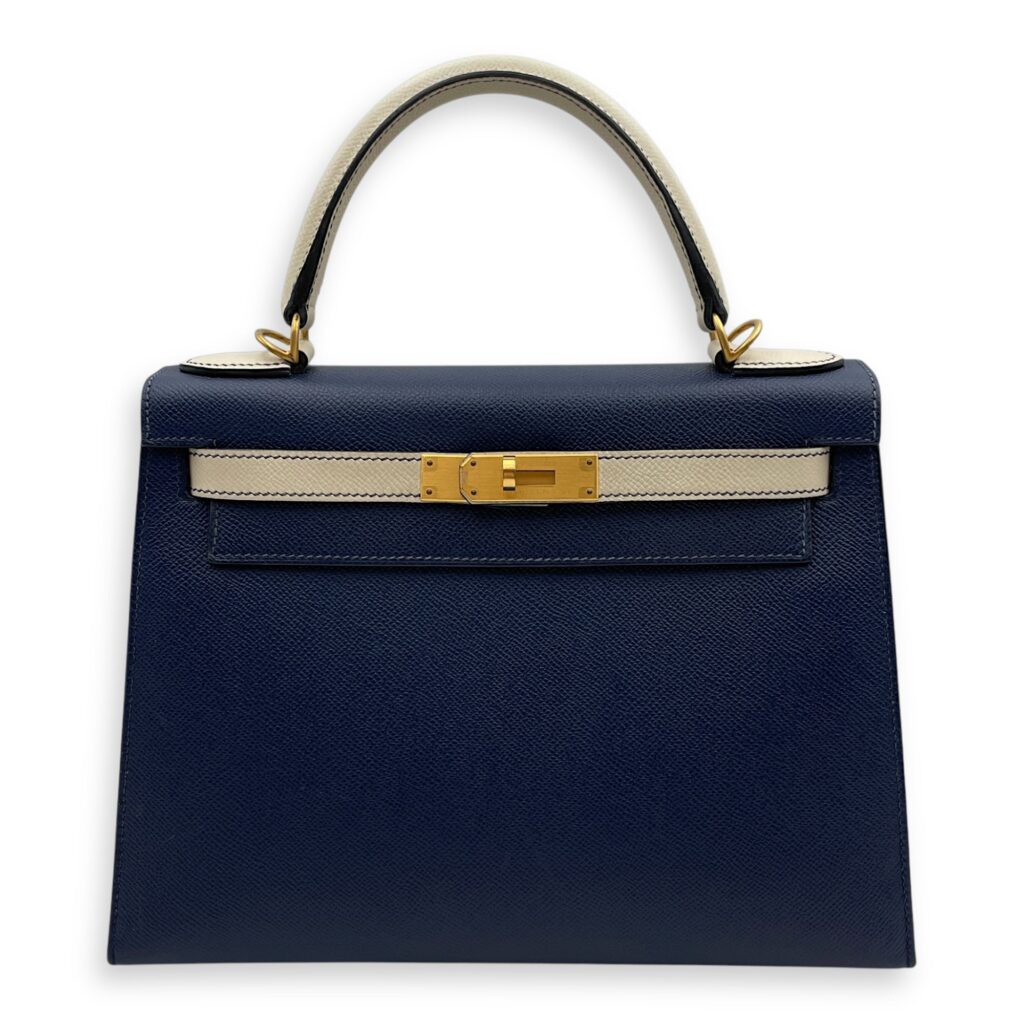 HSS Sellier Kelly 28 Blue Sapphire/Craie in Epsom, Brushed Gold hardware