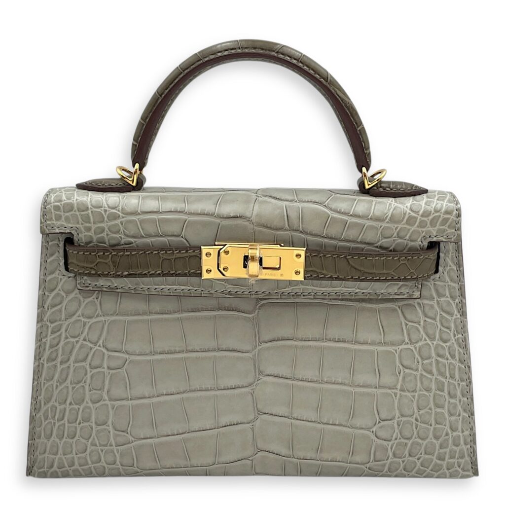 HSS Sellier Kelly 20 Gris Perle/Gris Elephant in Matte Alligator, Gold hardware