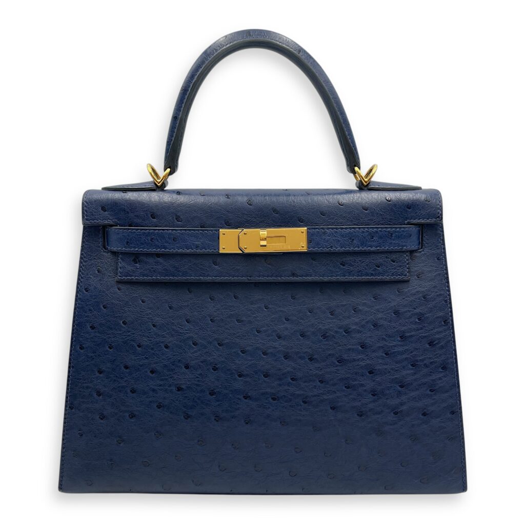 HSS Sellier Kelly 28 Iris/Jaune Ambre in Ostrich, Gold hardware