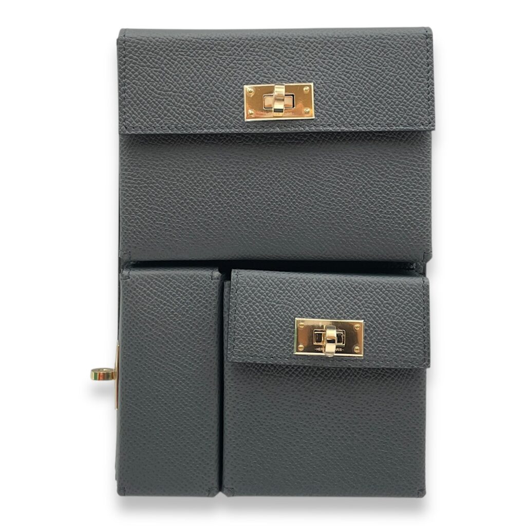 Kelly Multipocket Gris Misty in Epsom, Permabrass hardware
