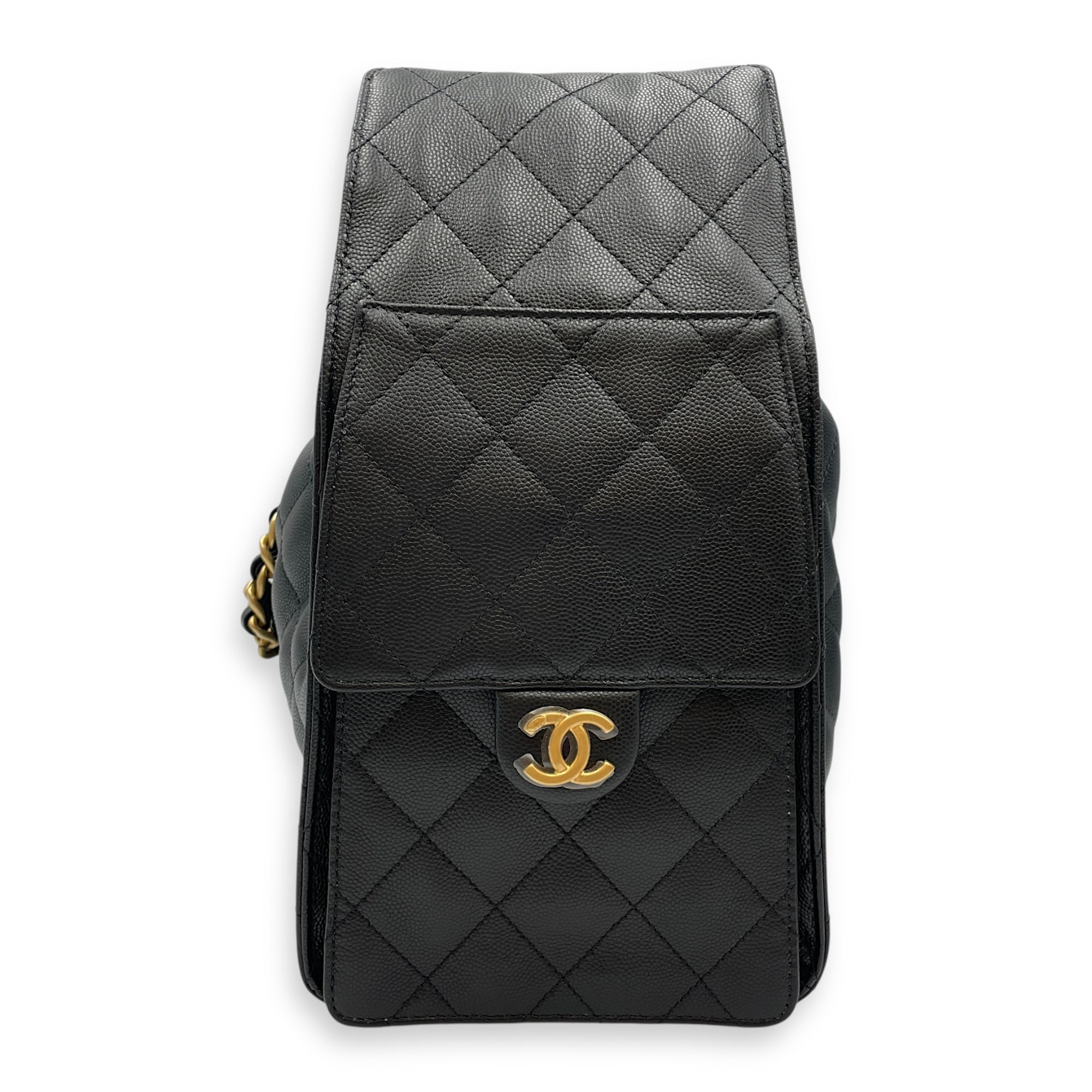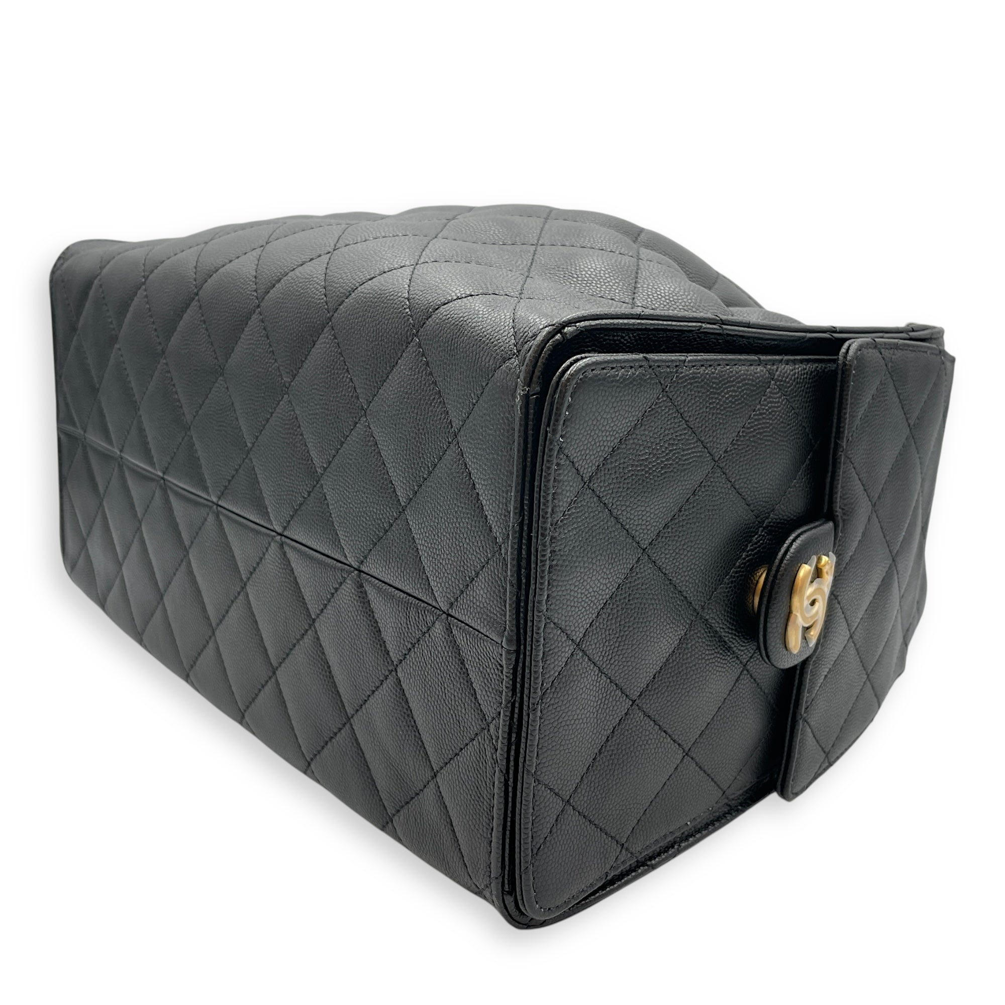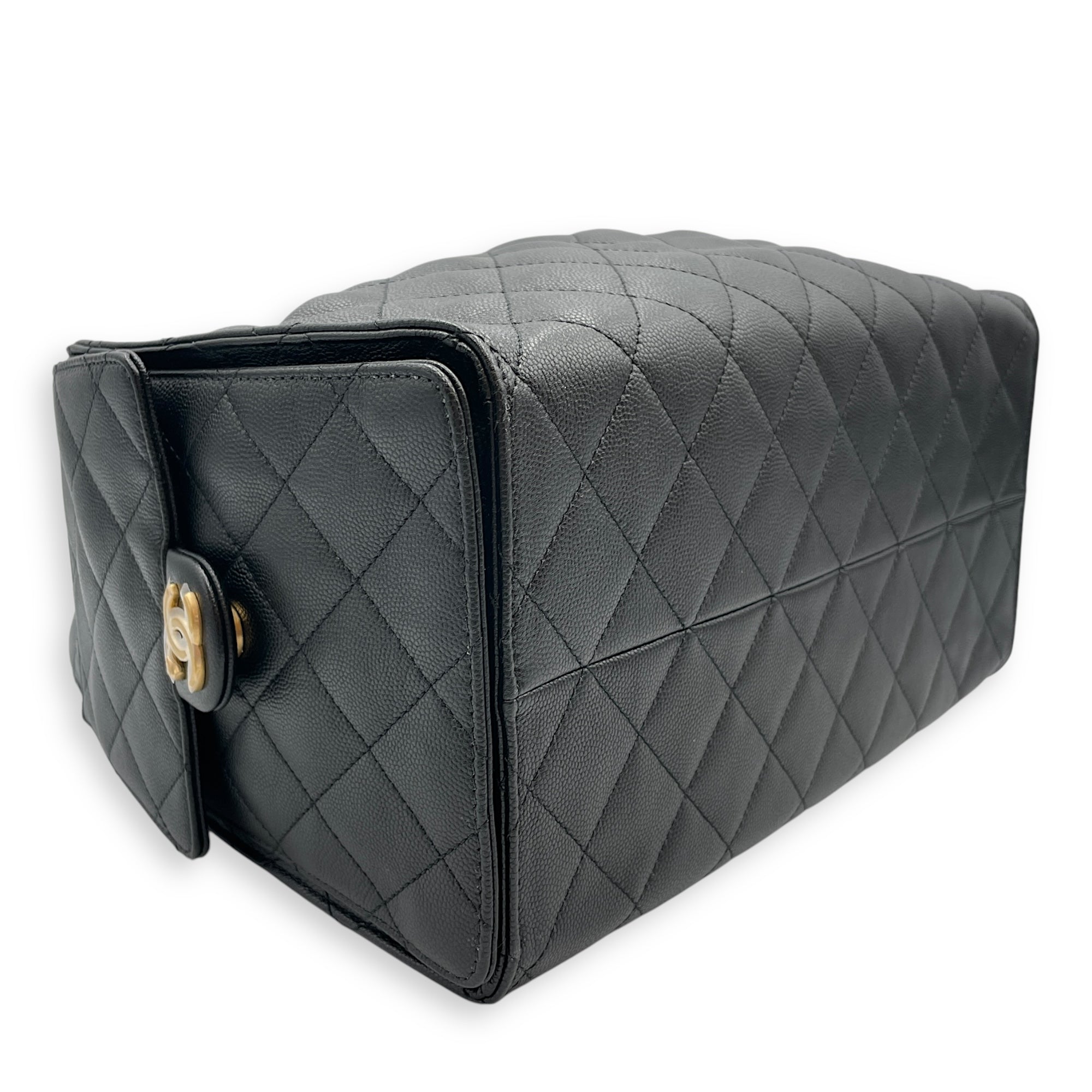 C25 Medium Black Shoulder Bag in Caviar Leather, Gold hardware