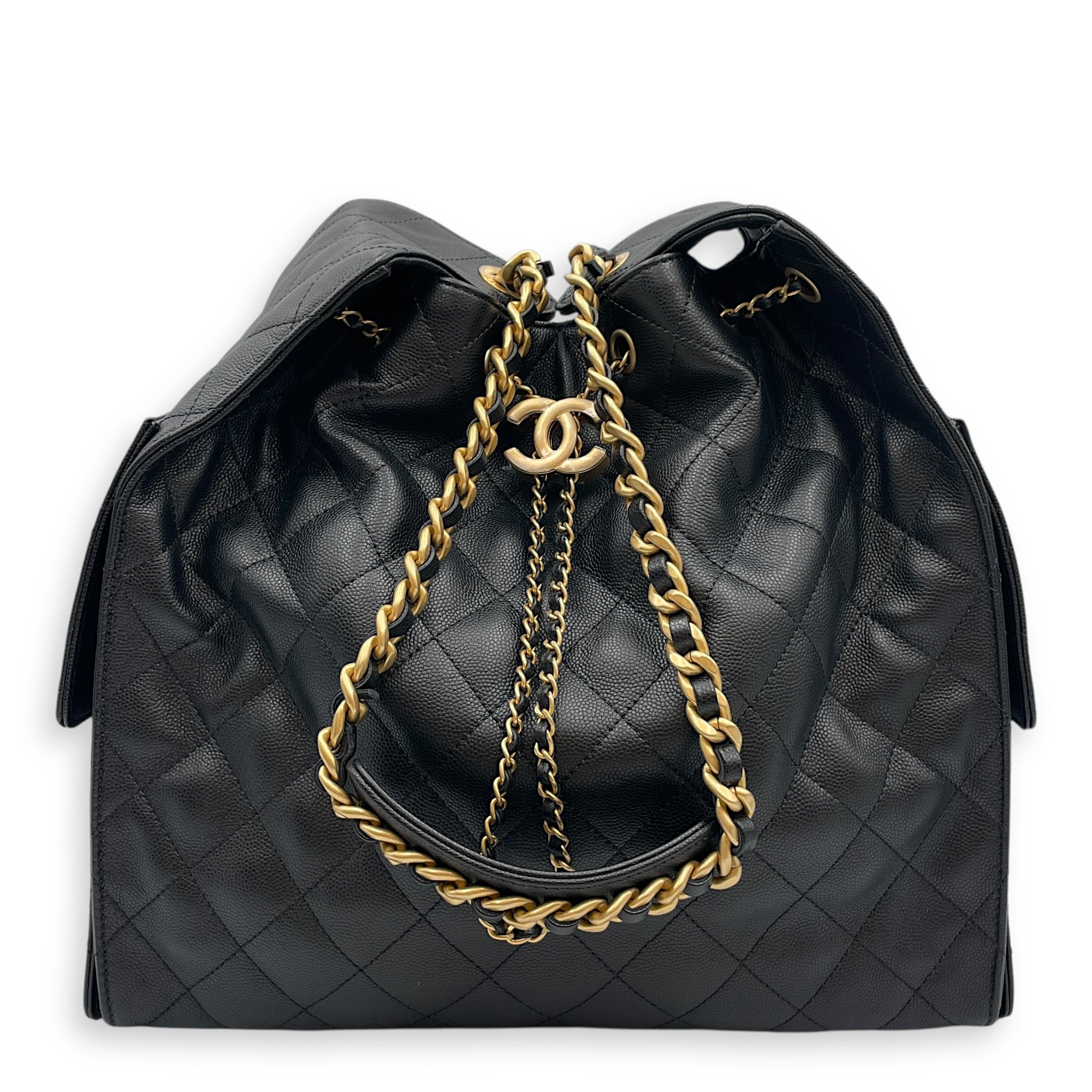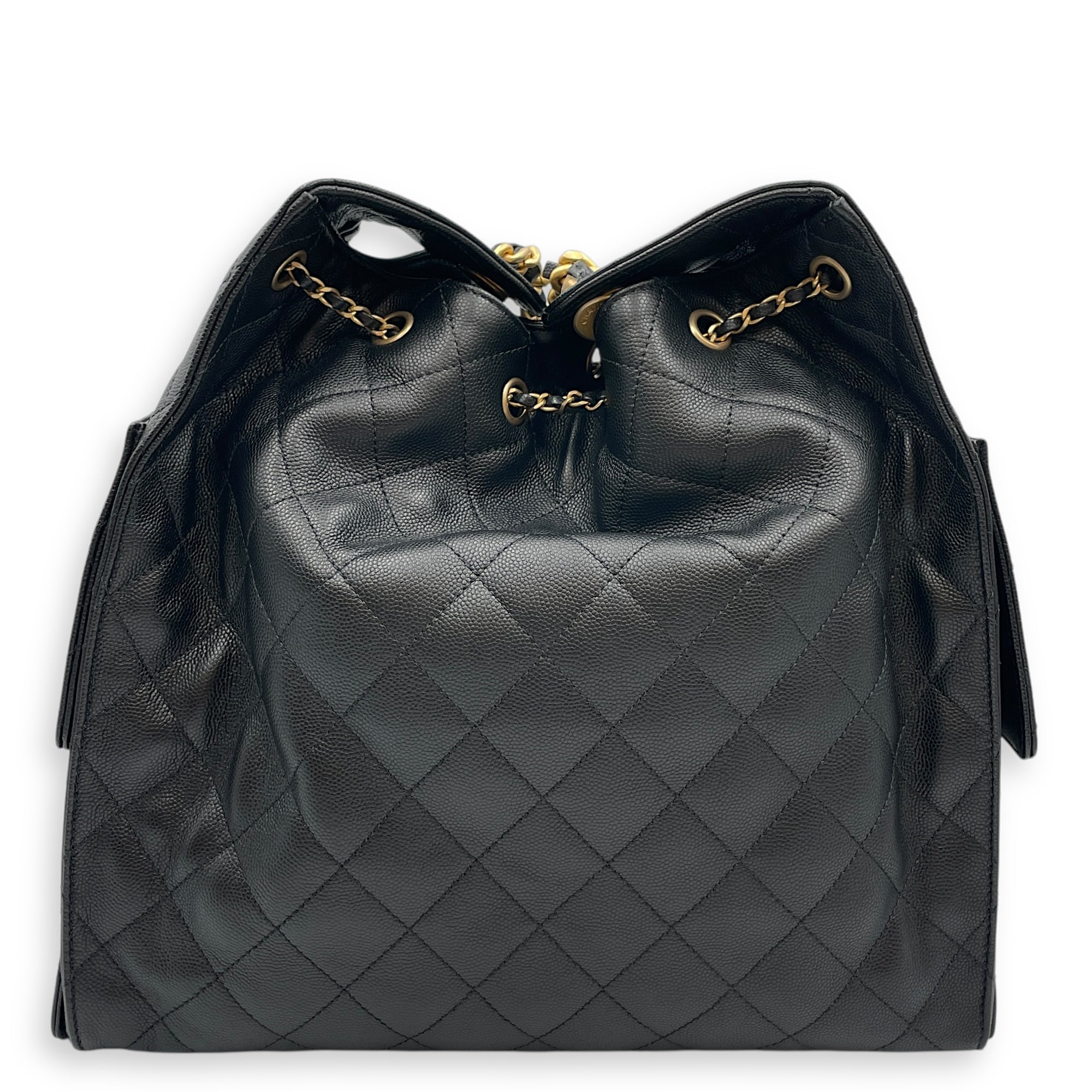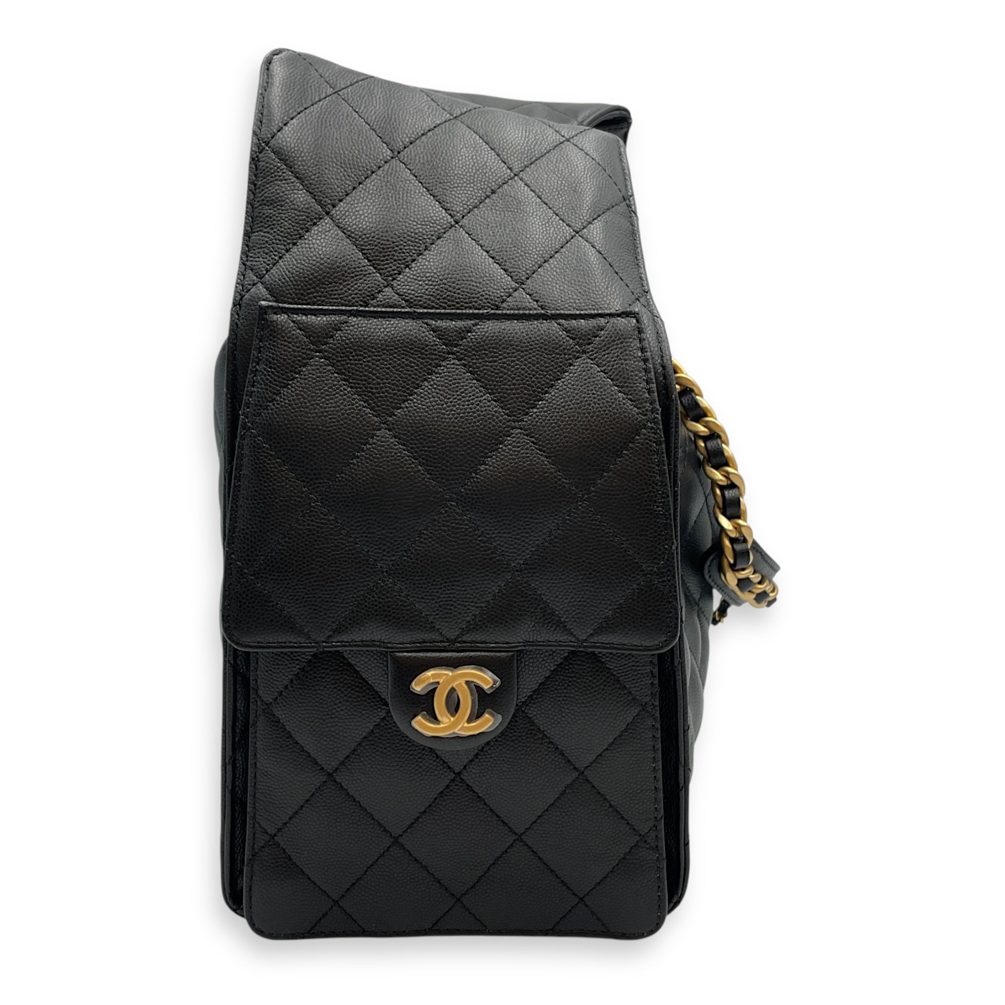 C25 Medium Black Shoulder Bag in Caviar Leather, Gold hardware