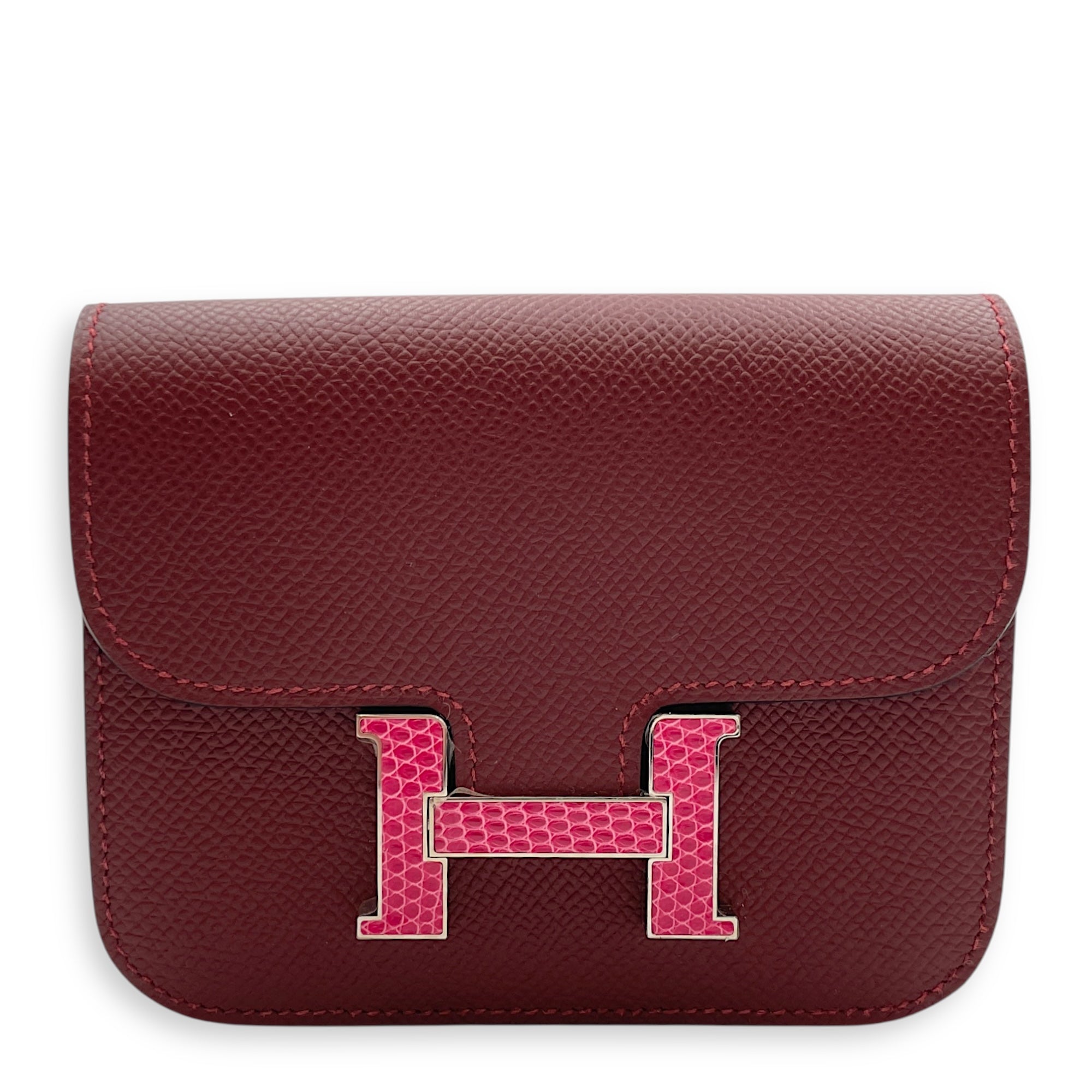 Constance Slim Rouge H/Rose Wallet in Epsom/Lizard, Palladium hardware