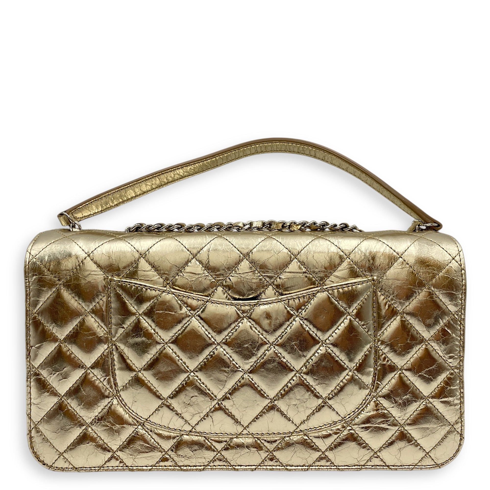 Be the first to review “Crinkled Gold Flap Bag in Distressed Leather, Gold hardware”