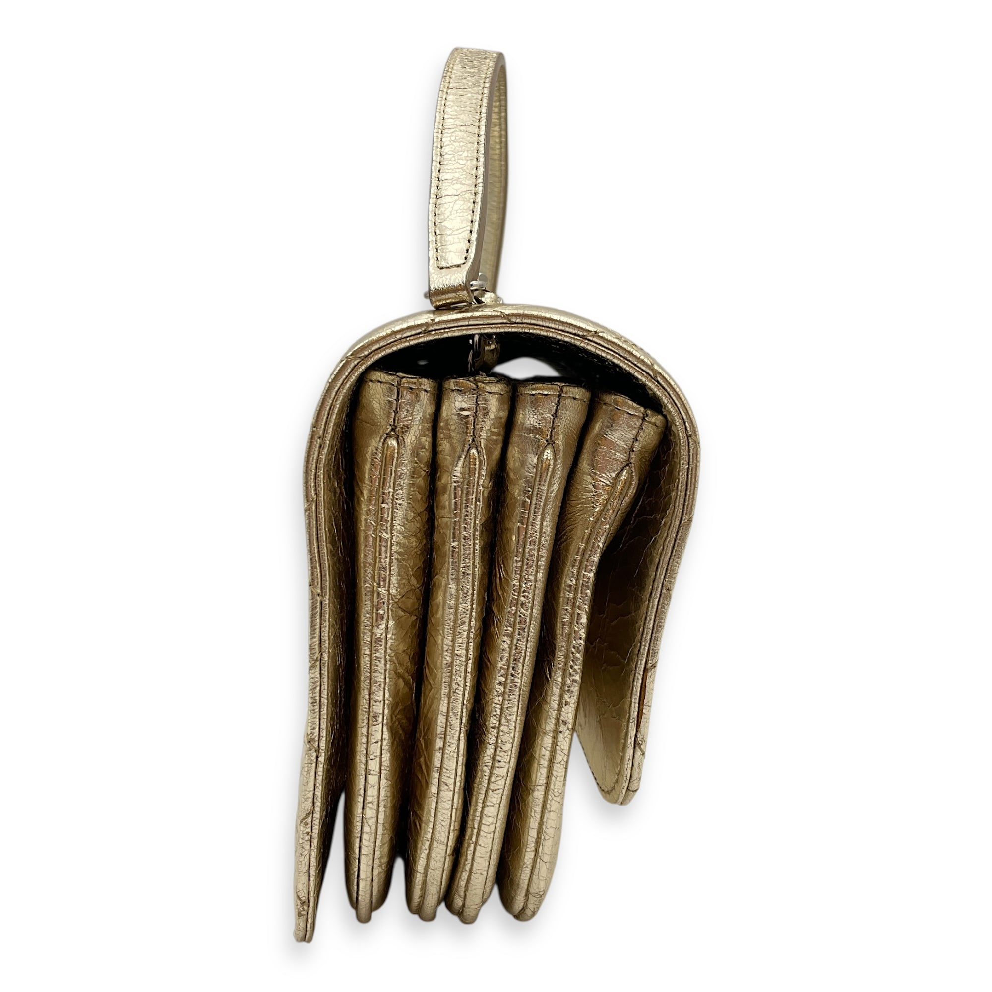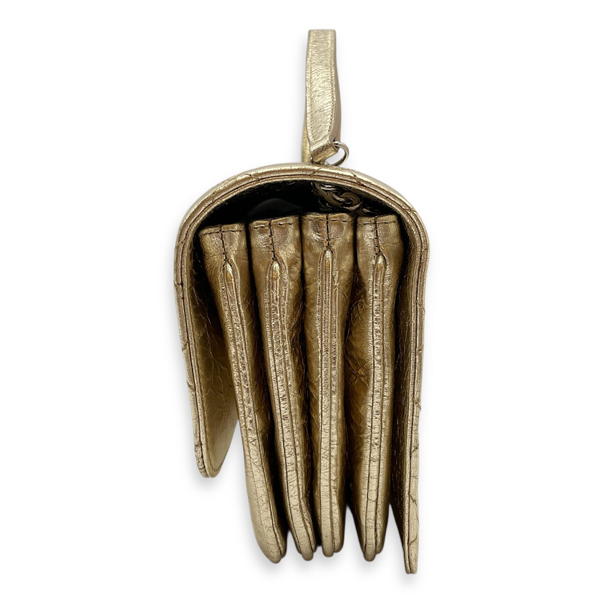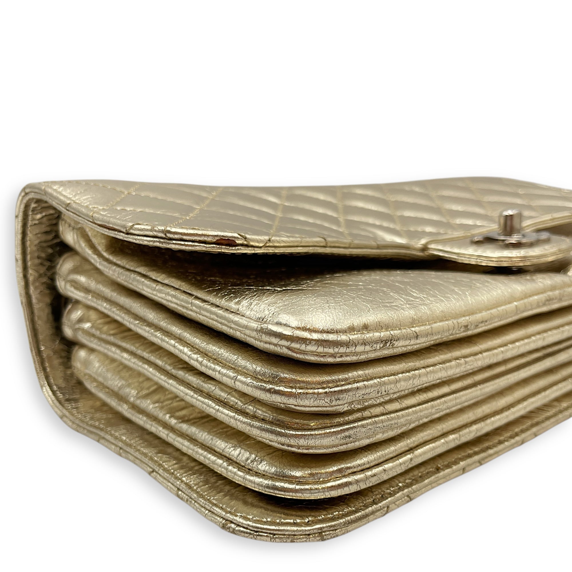 Crinkled Gold Flap Bag in Distressed Leather, Gold hardware