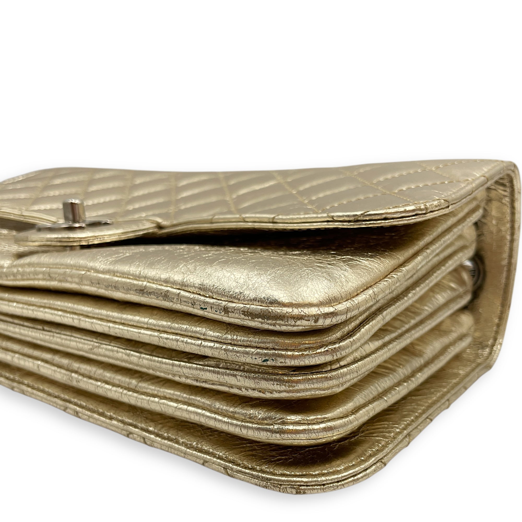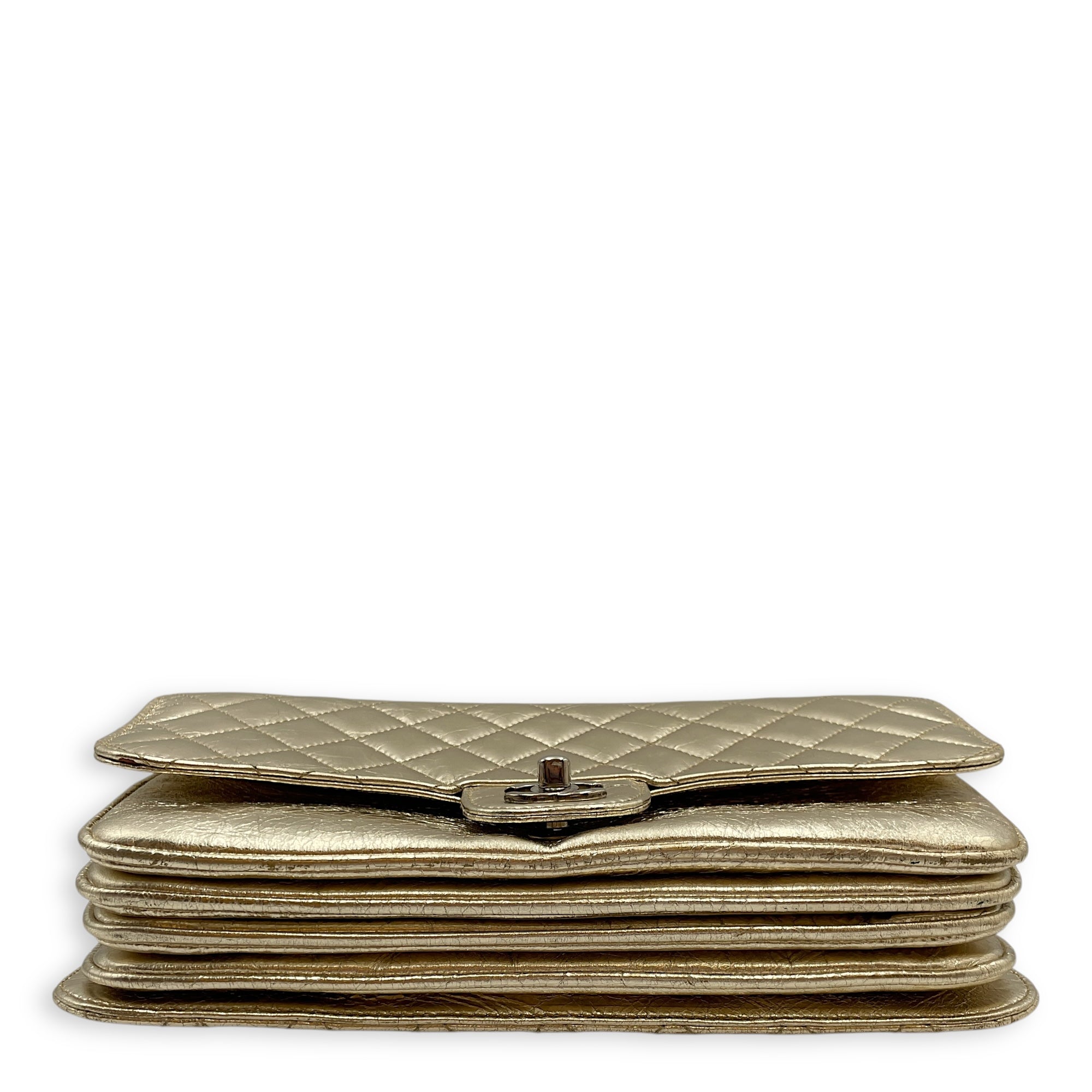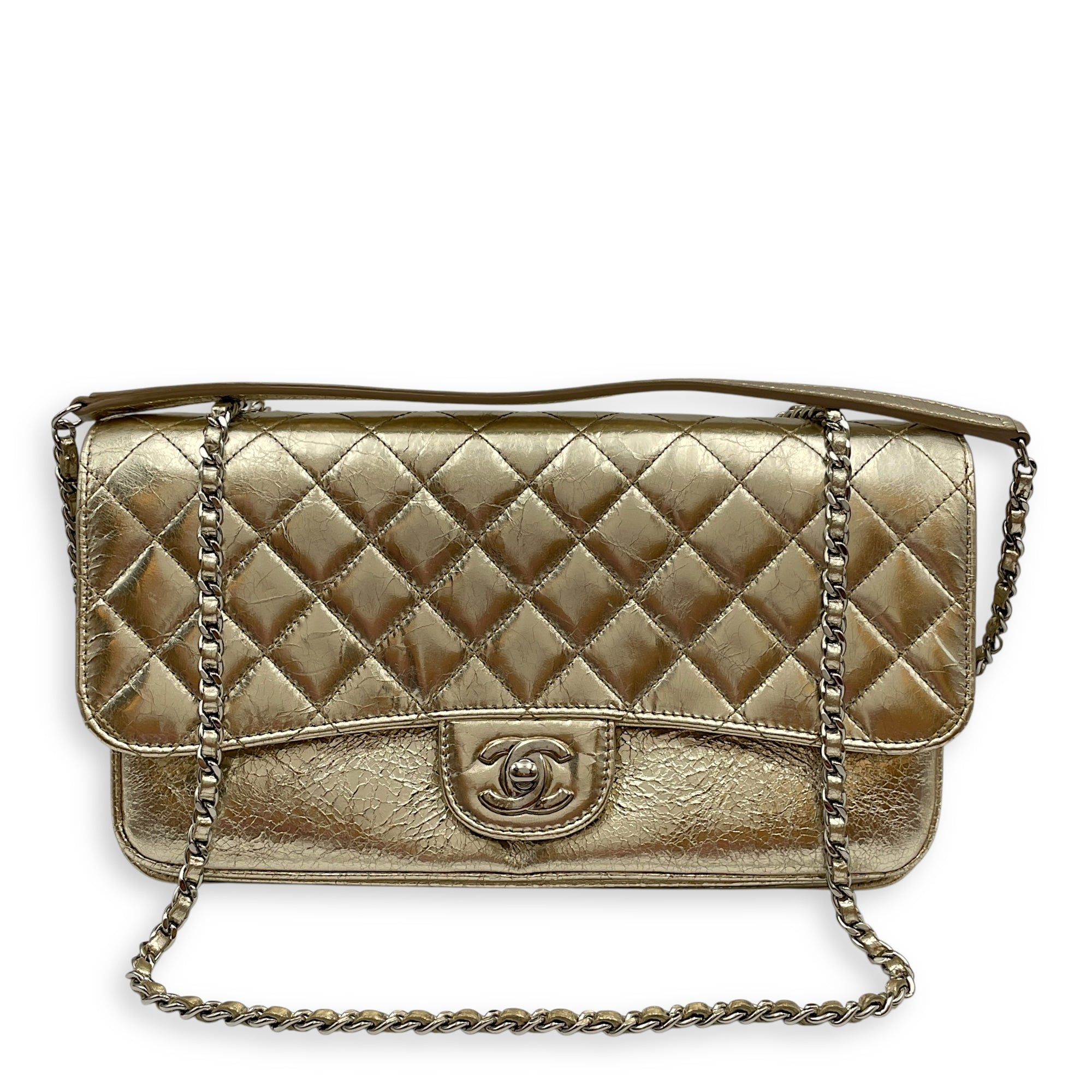 Crinkled Gold Flap Bag in Distressed Leather, Gold hardware