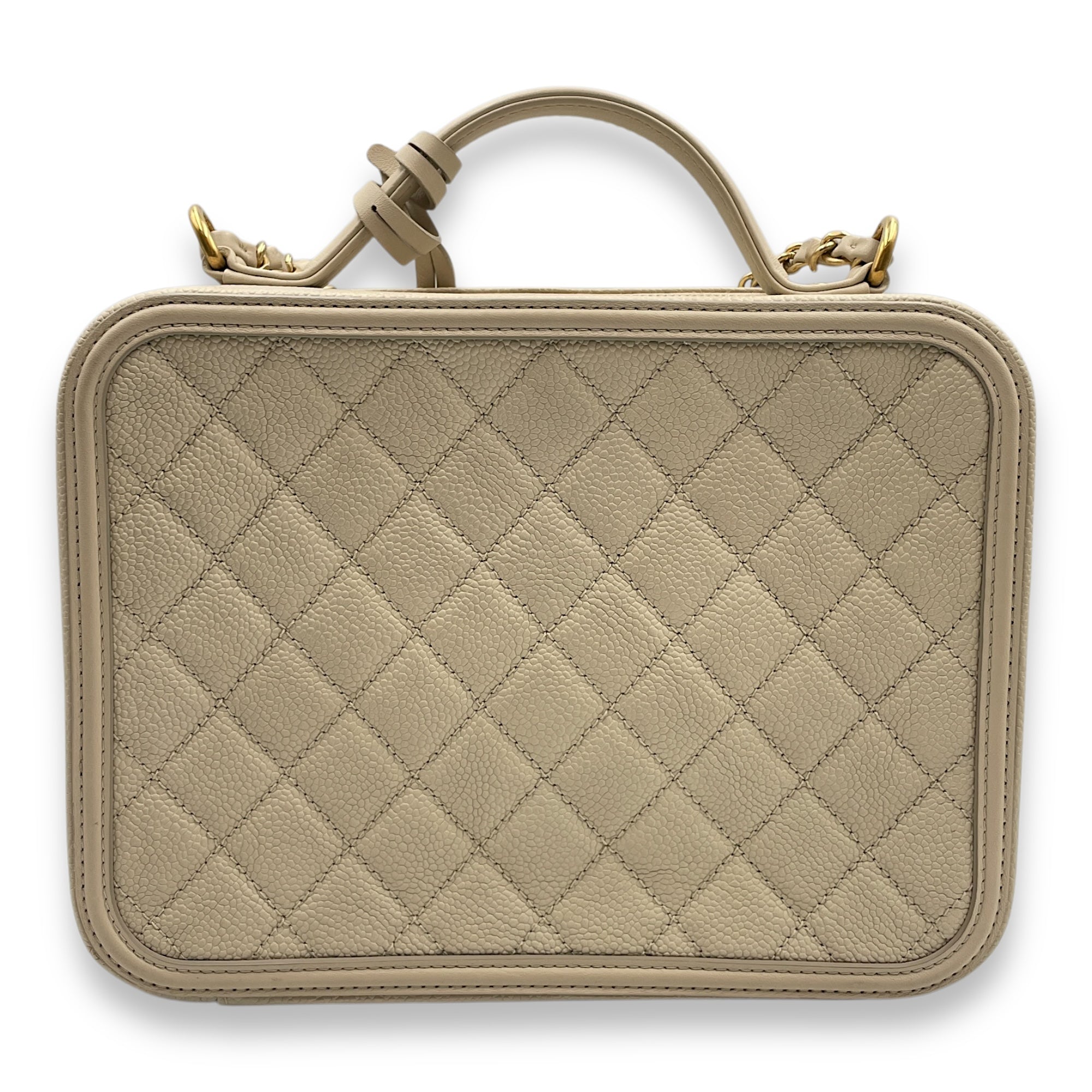 Filigree Vanity 24x18x9.5cm Beige Shoulder Bag in Caviar, Gold hardware