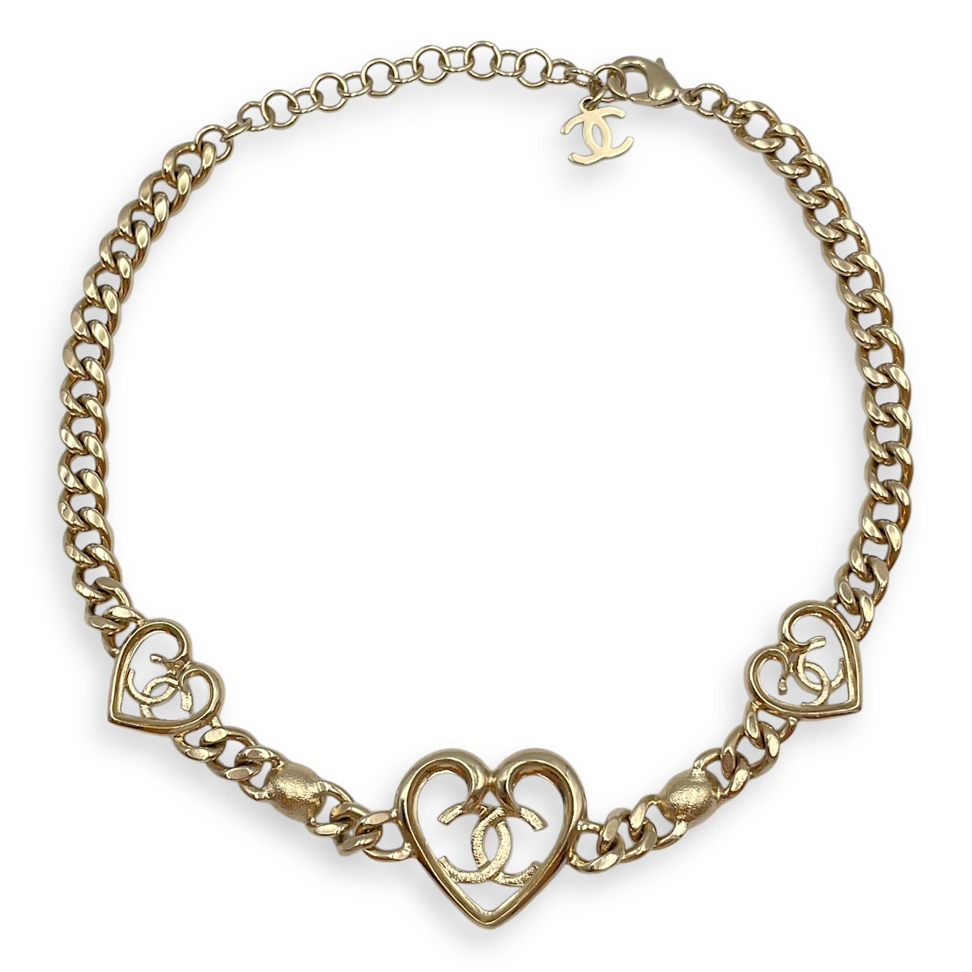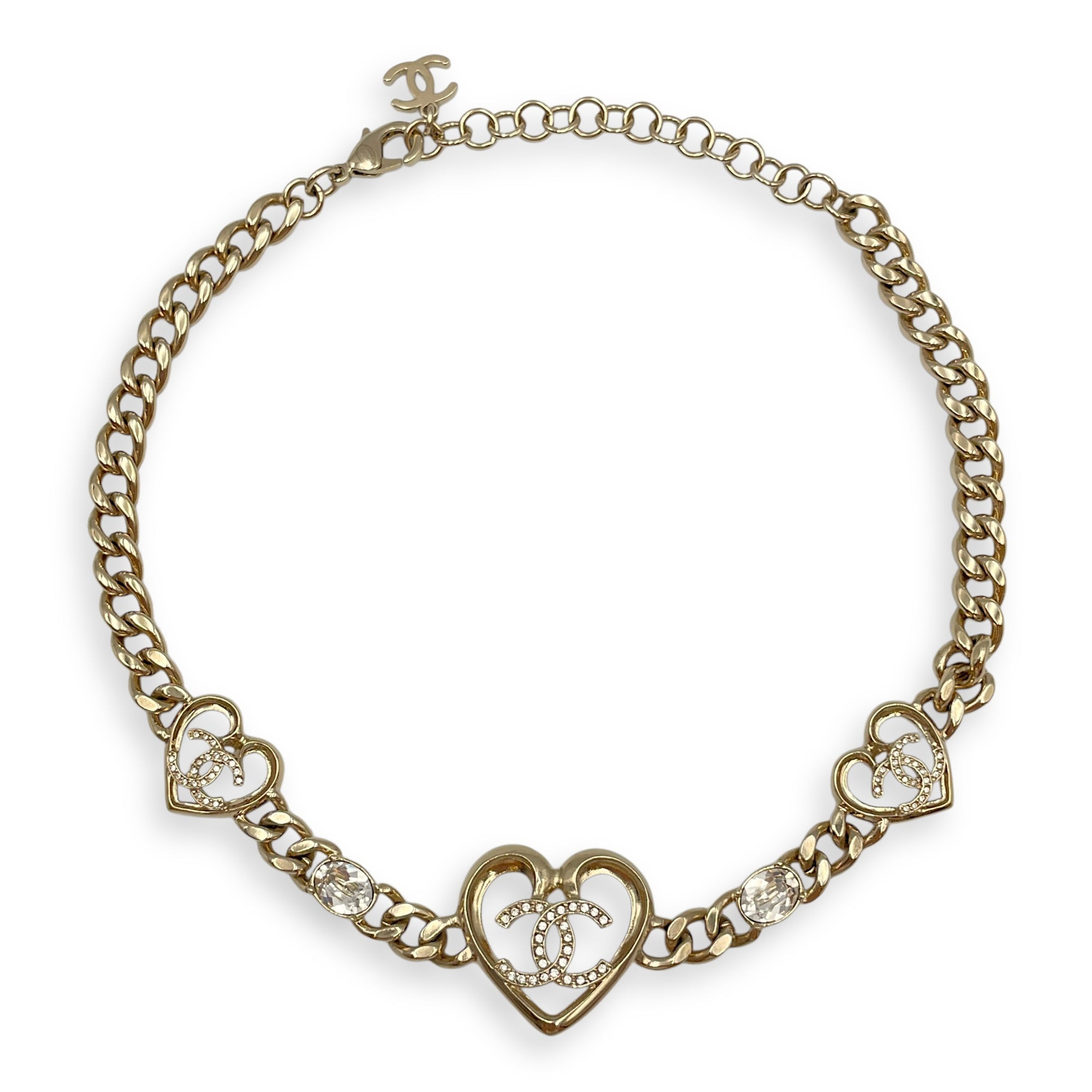 Heart Crystal CC Logo Brushed Gold Hardware Choker