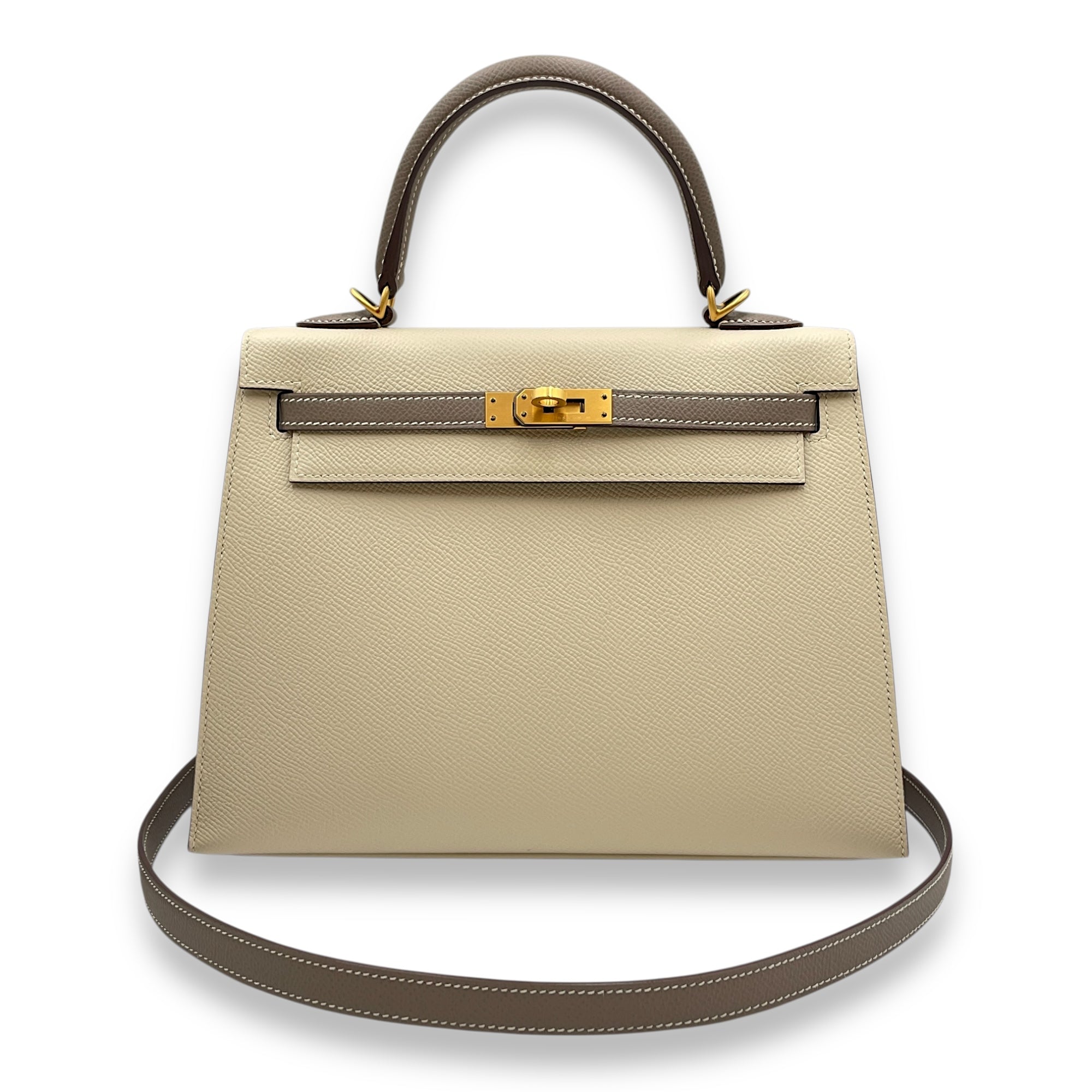Be the first to review “HSS Sellier Kelly 25 Craie/Gris Asphalt in Epsom, Brushed Gold hardware”