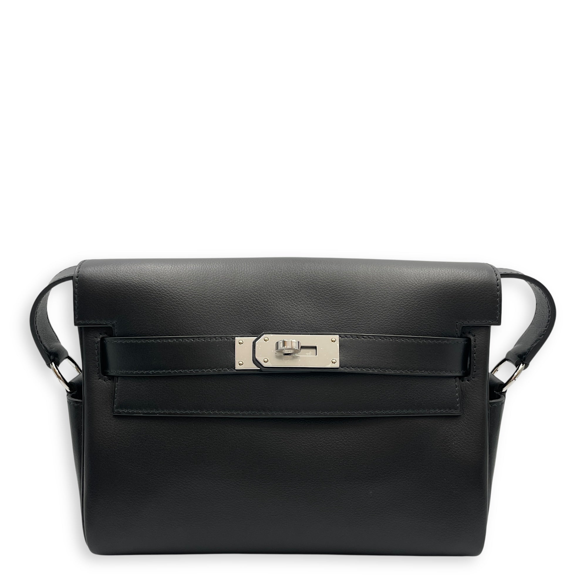 Kelly Messenger PM Black in Evergraine, Palladium hardware