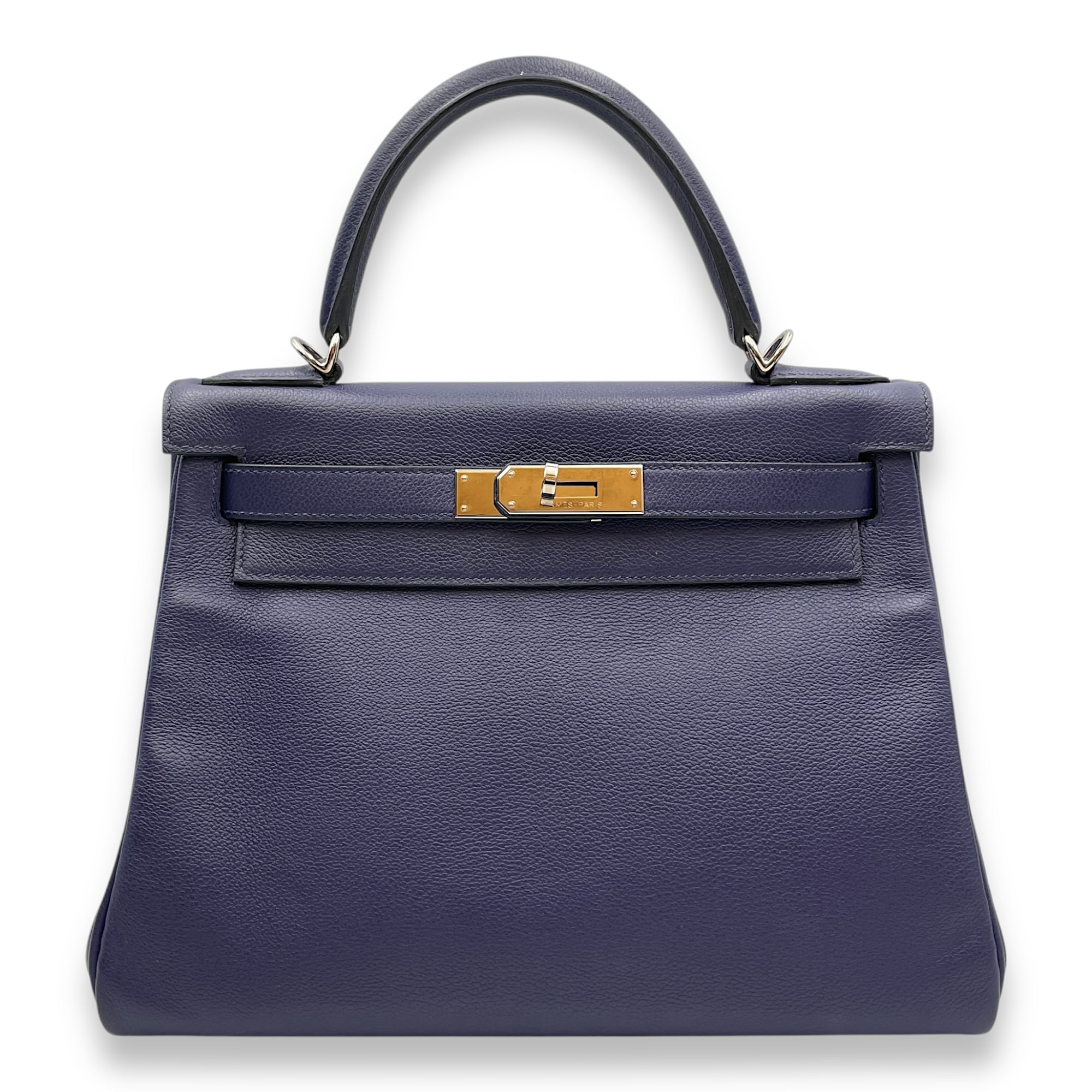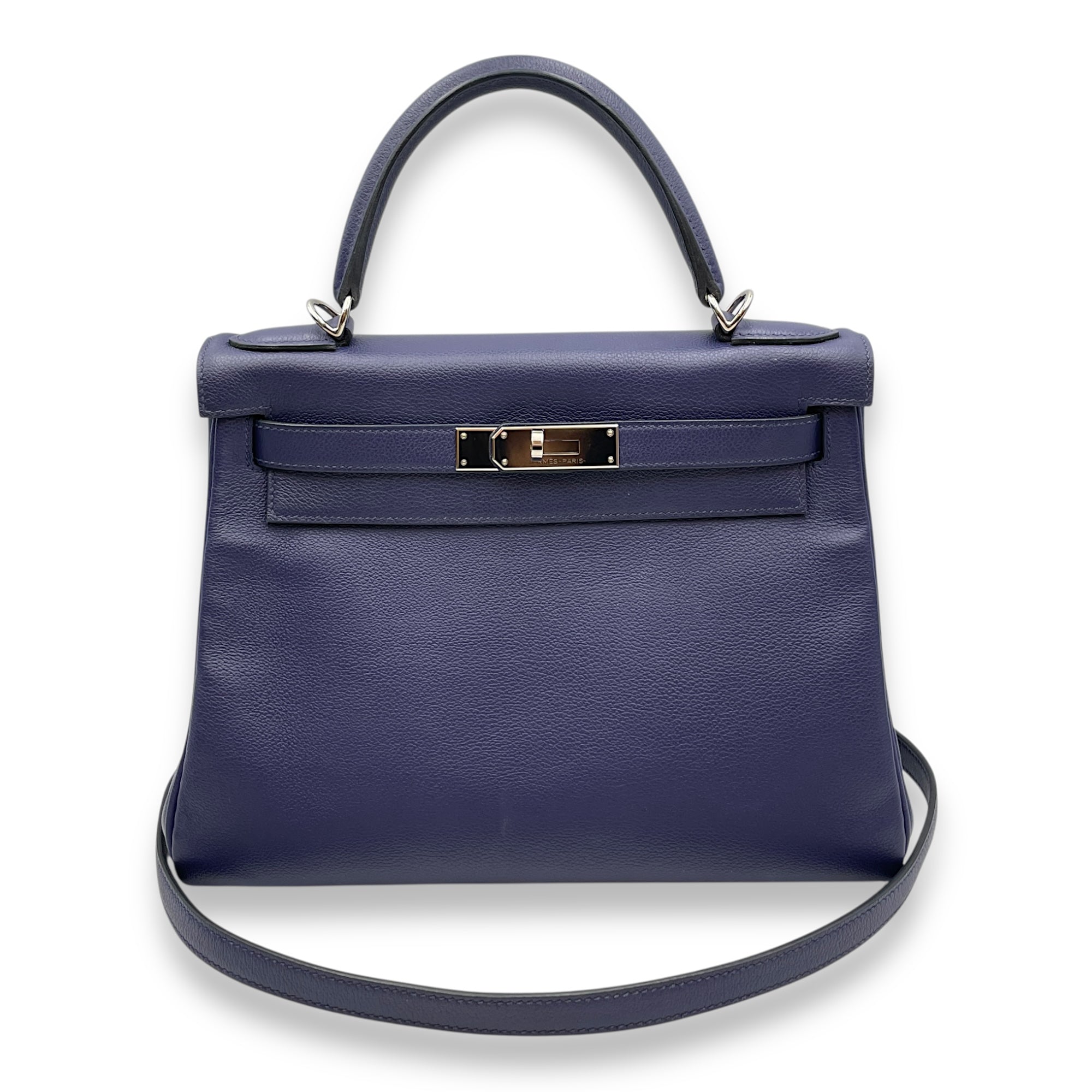 Kelly Verso 28 Blue Encre/Blue Zellige in Evercolor, Palladium hardware