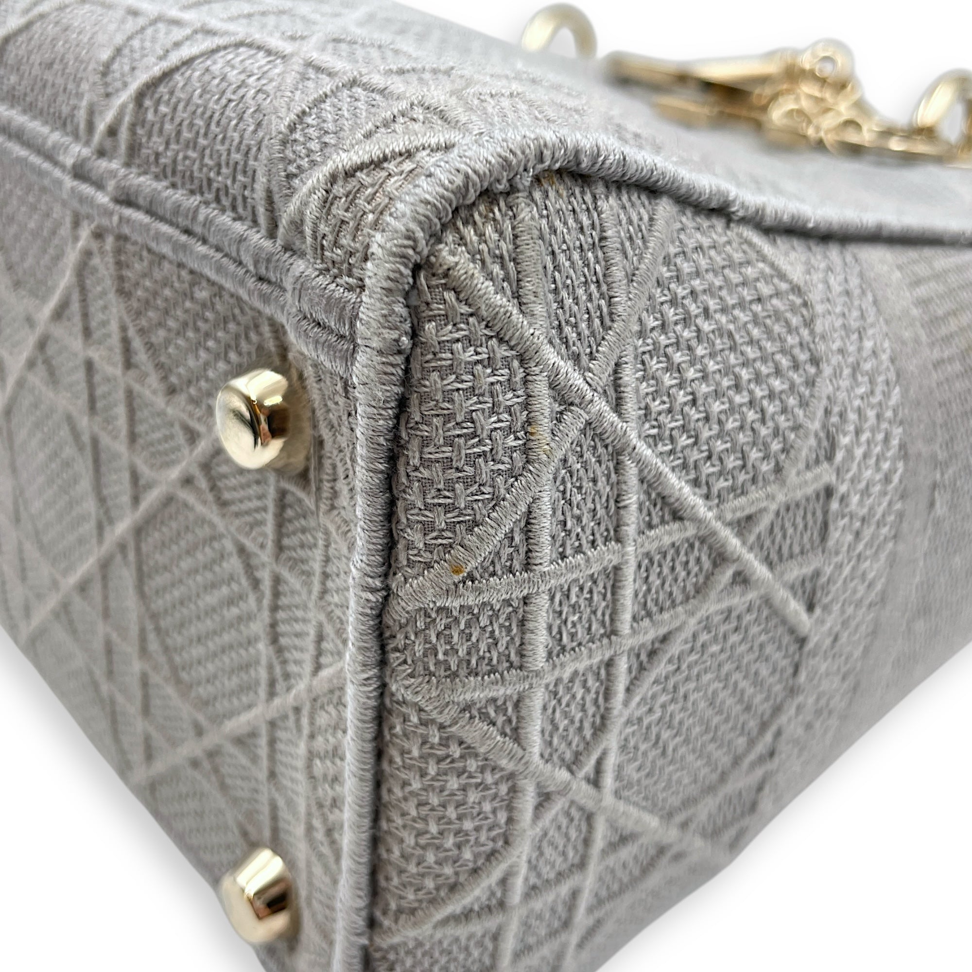 Lady Dior Medium Grey Top Handle Bag in Canvas, Gold hardware