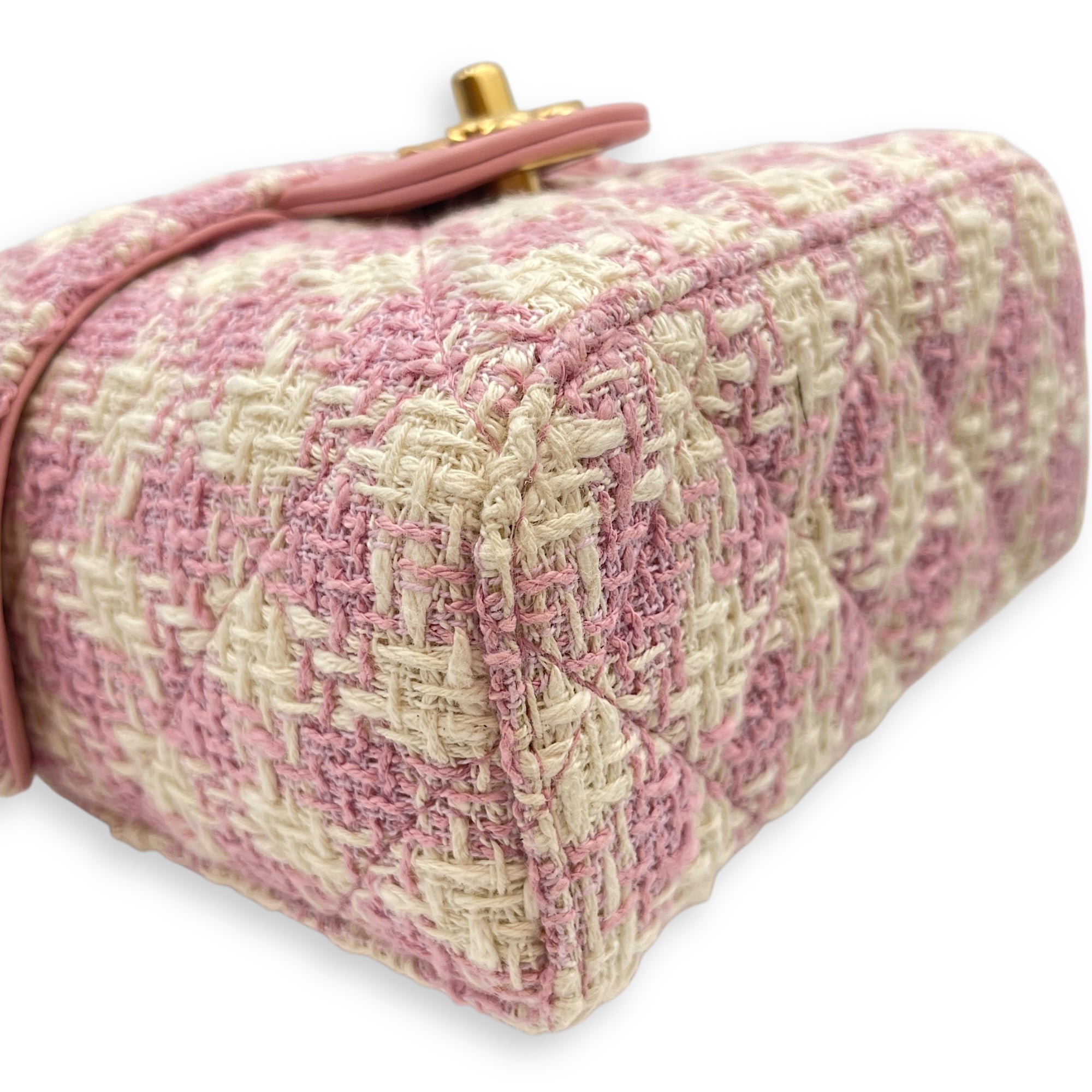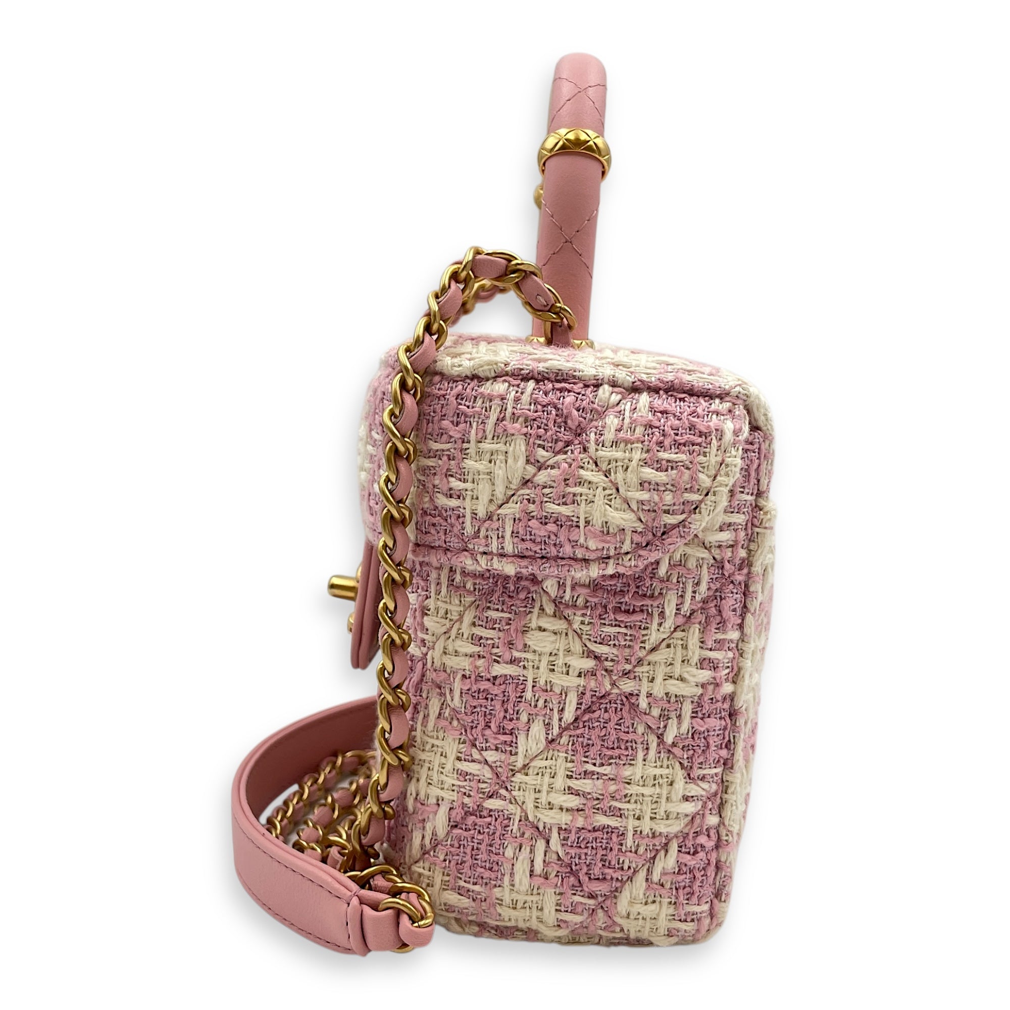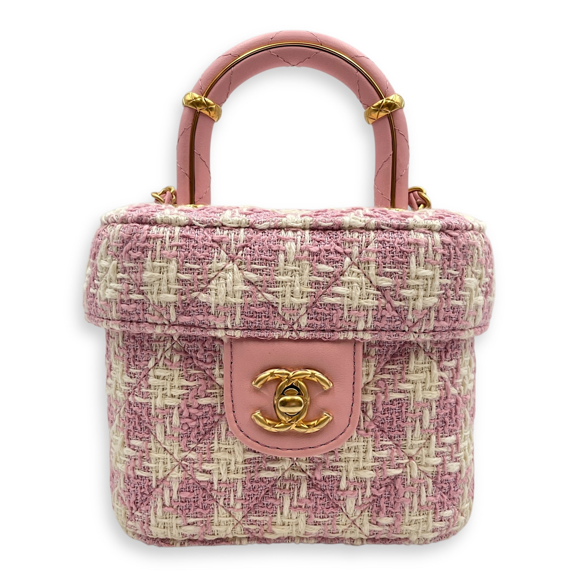 Be the first to review “Matelasse Small Pink Vanity Case in Tweed, Gold hardware”