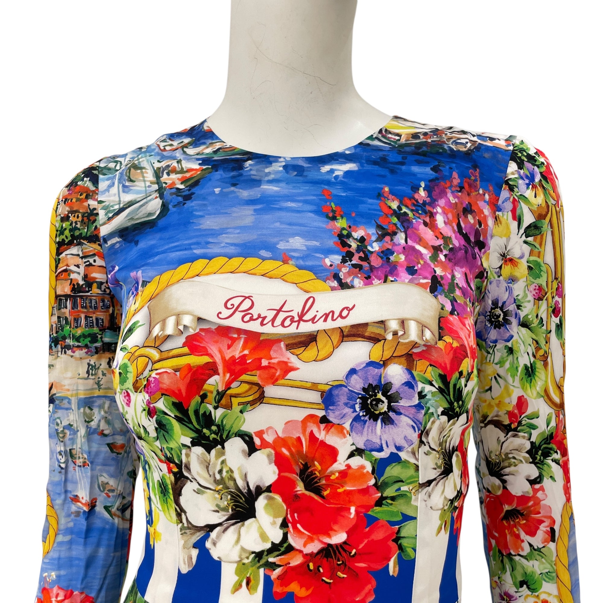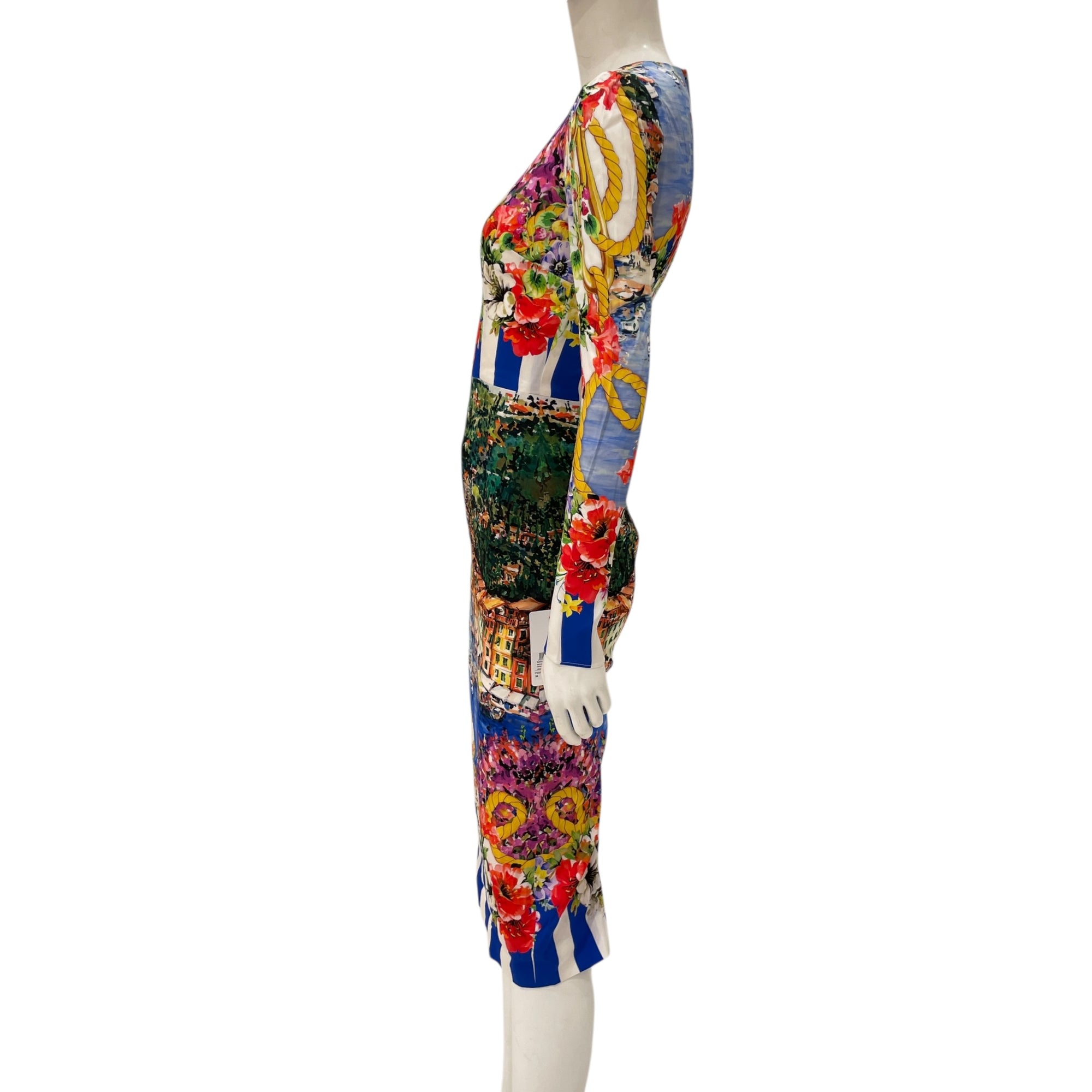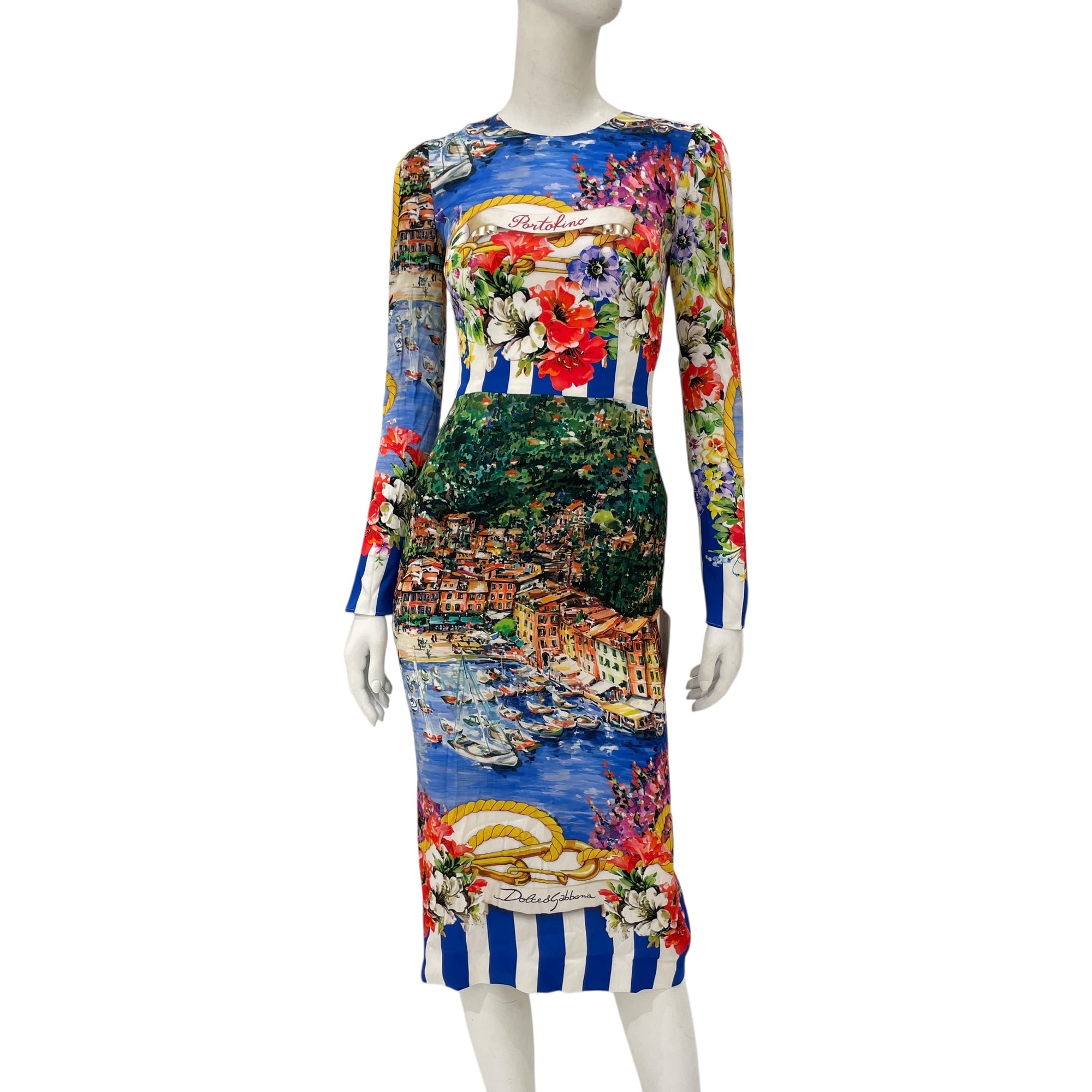Portofino Printed Silk-Blend Midi Dress 38 Multi-colour Ready-To-Wear , Silver hardware