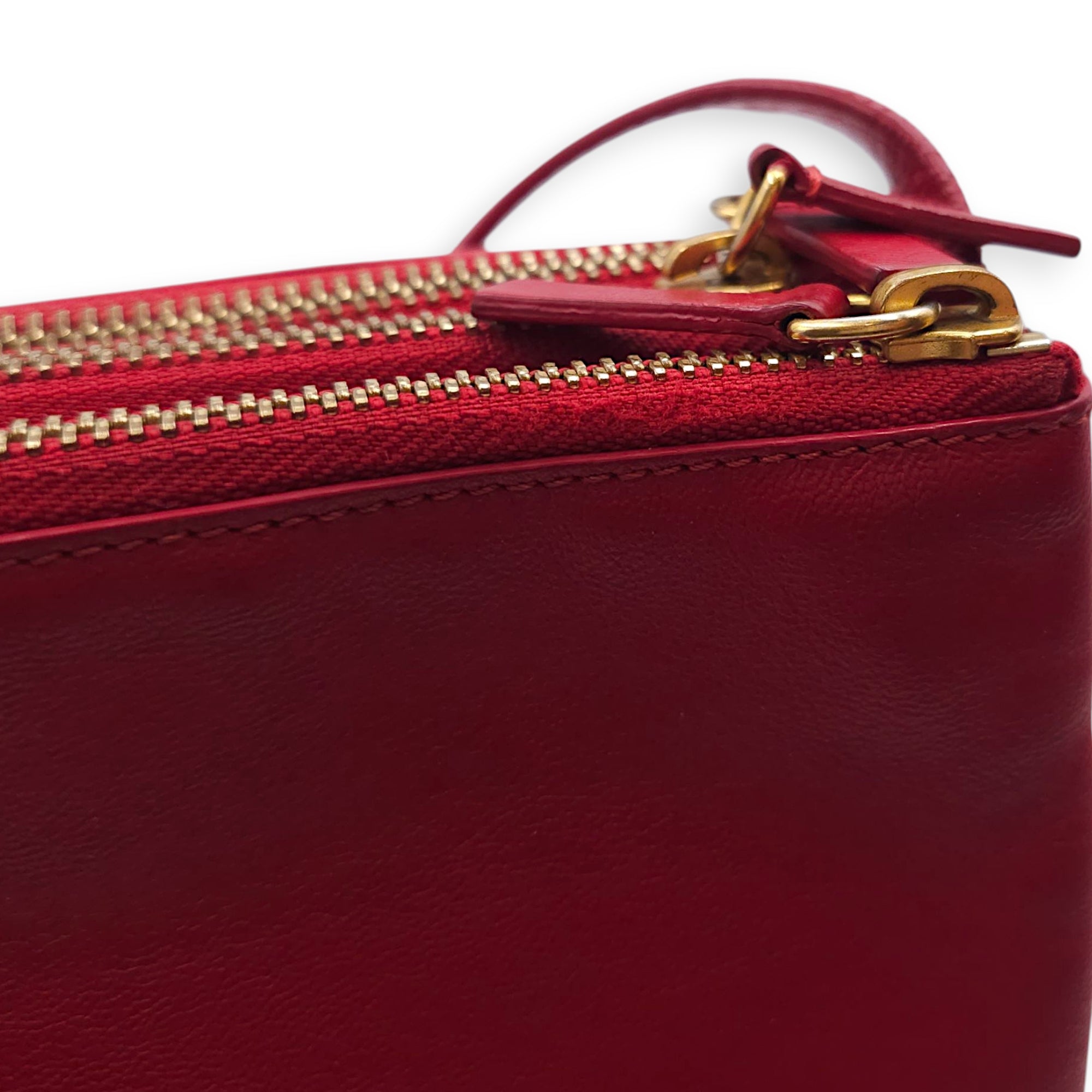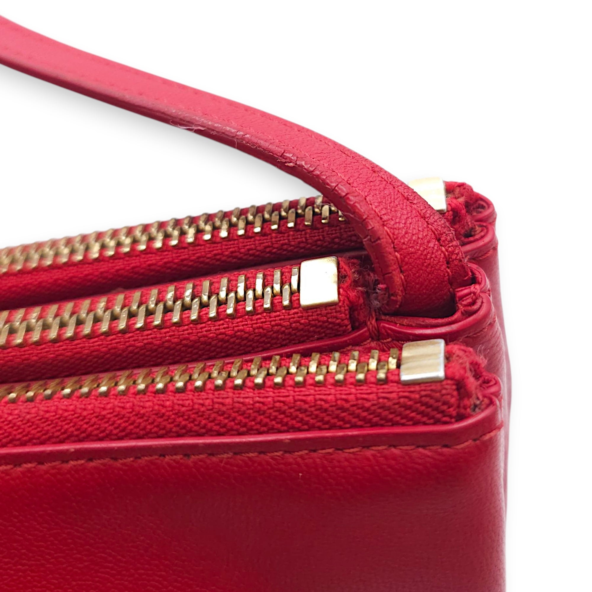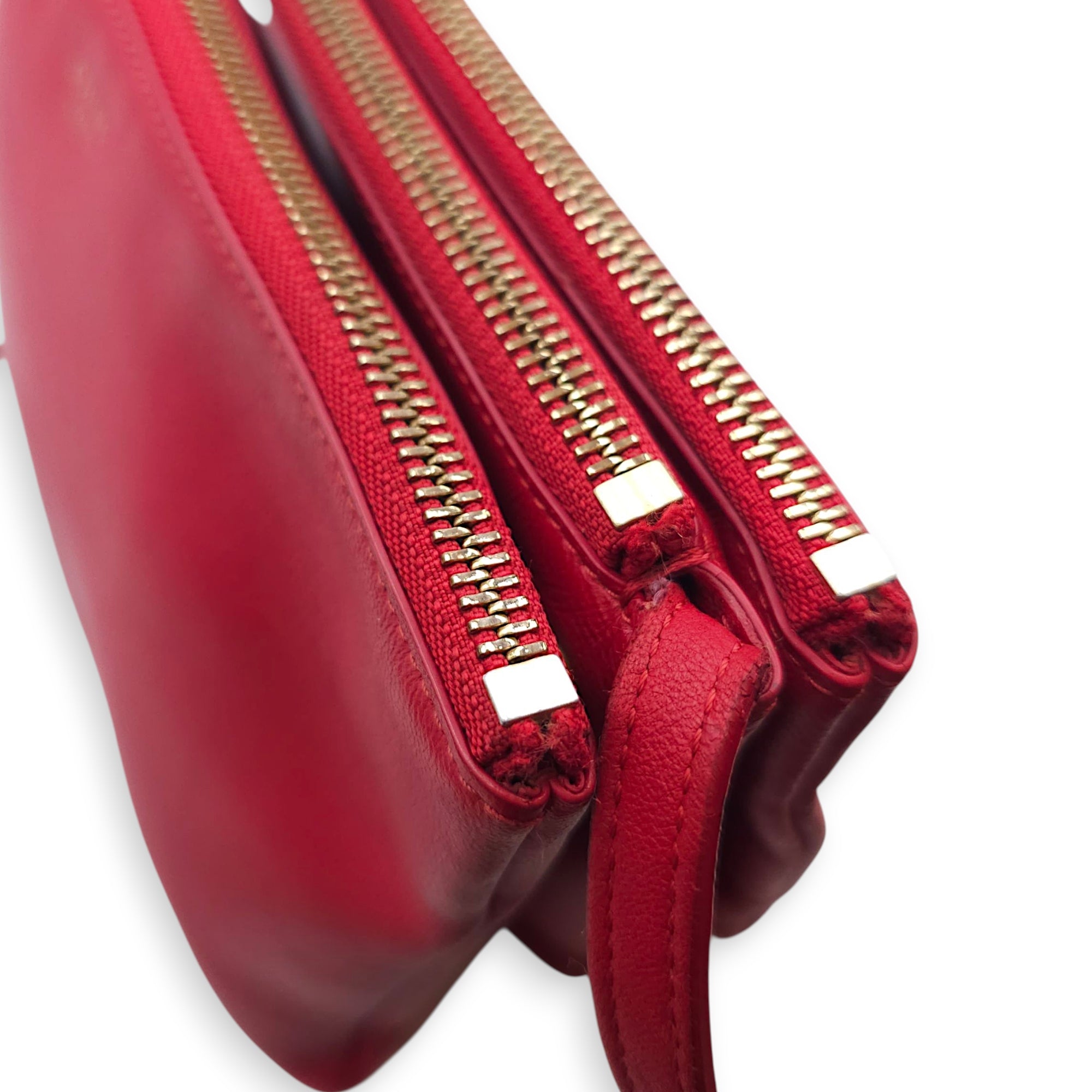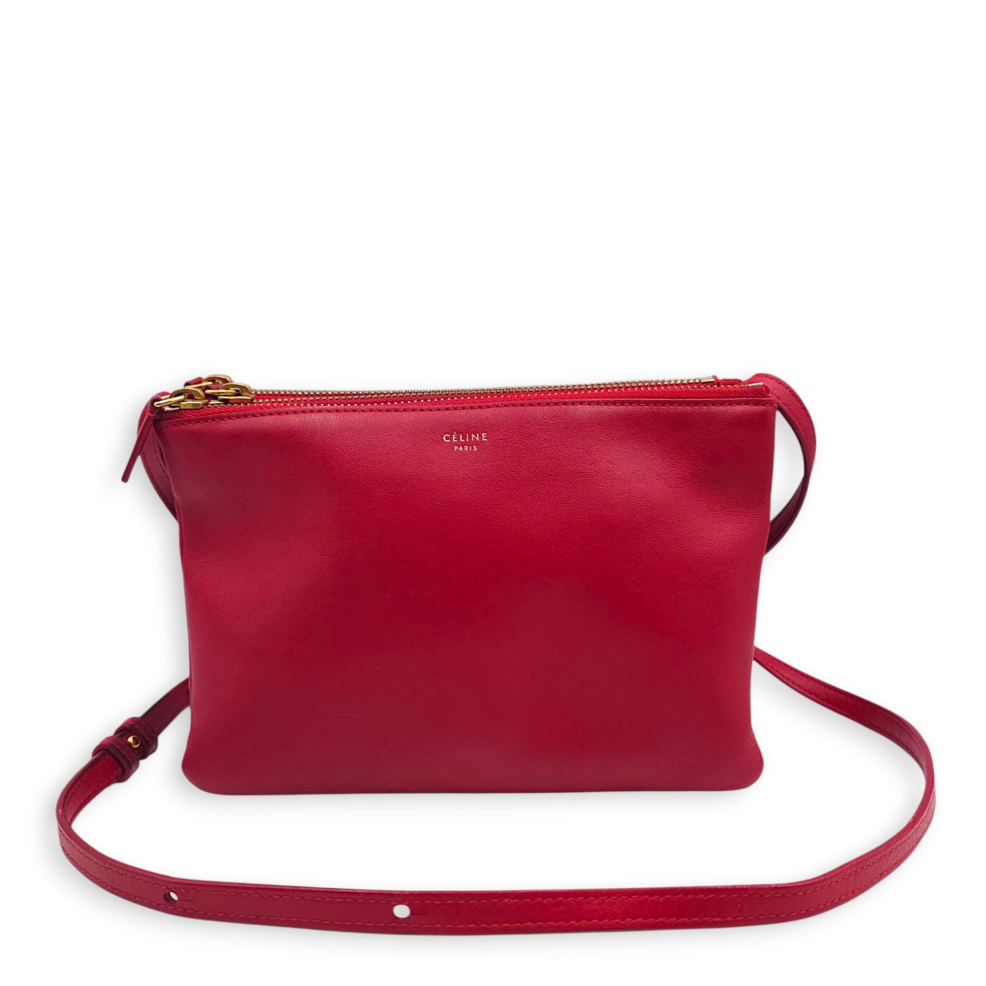 Trio Red Pouch with Strap in Calfskin, Gold hardware