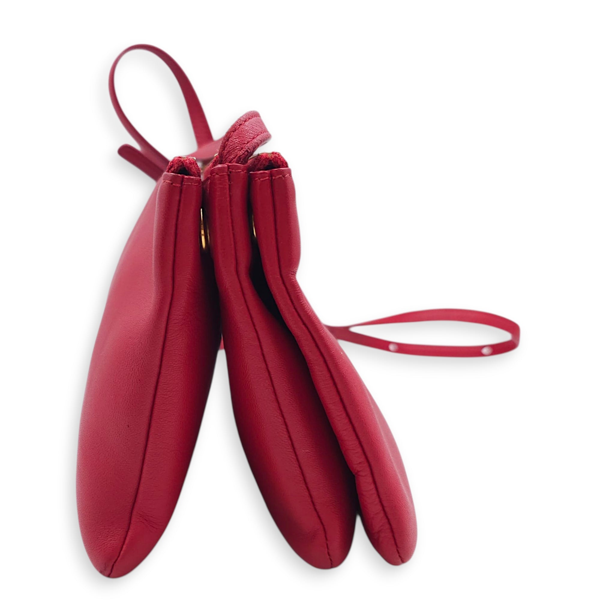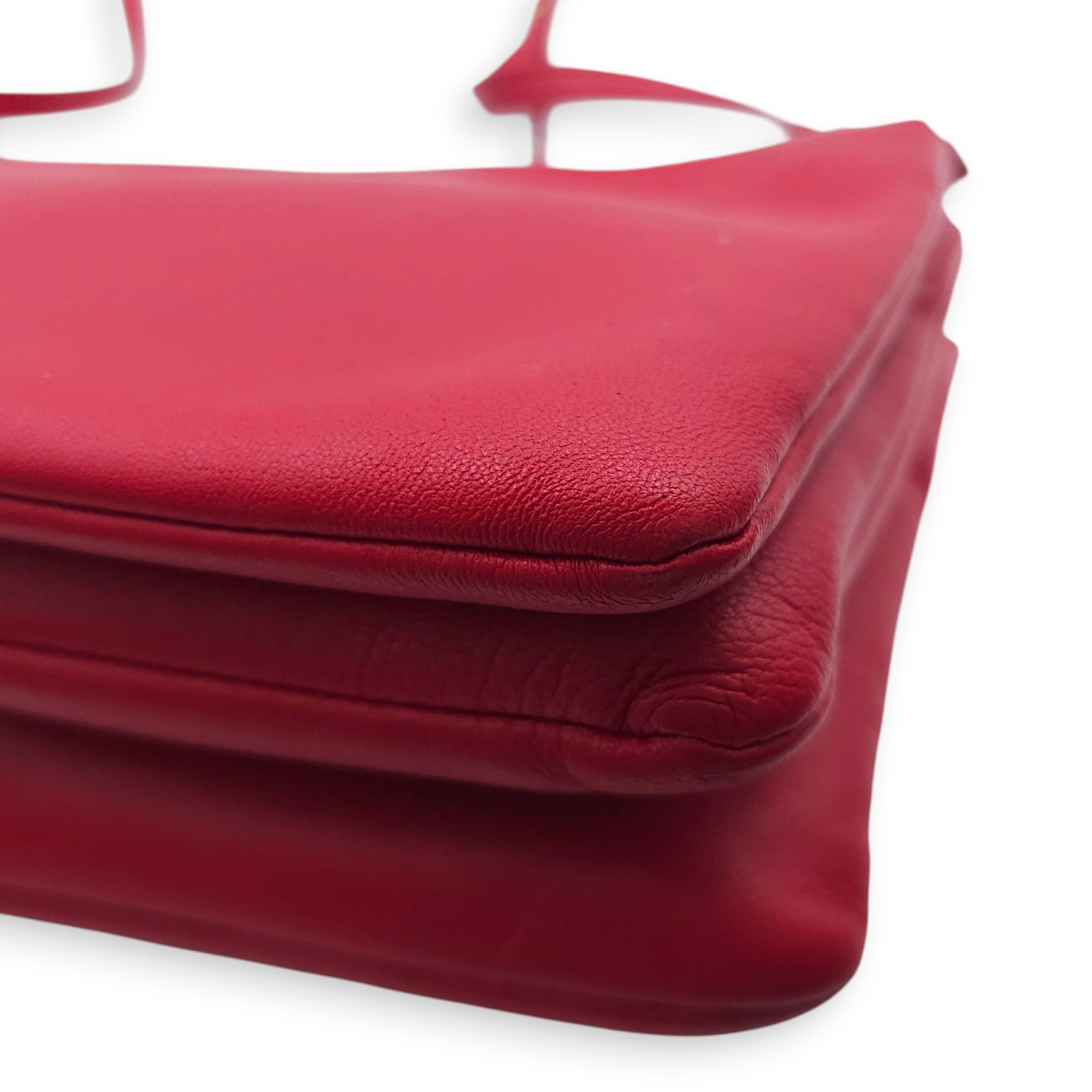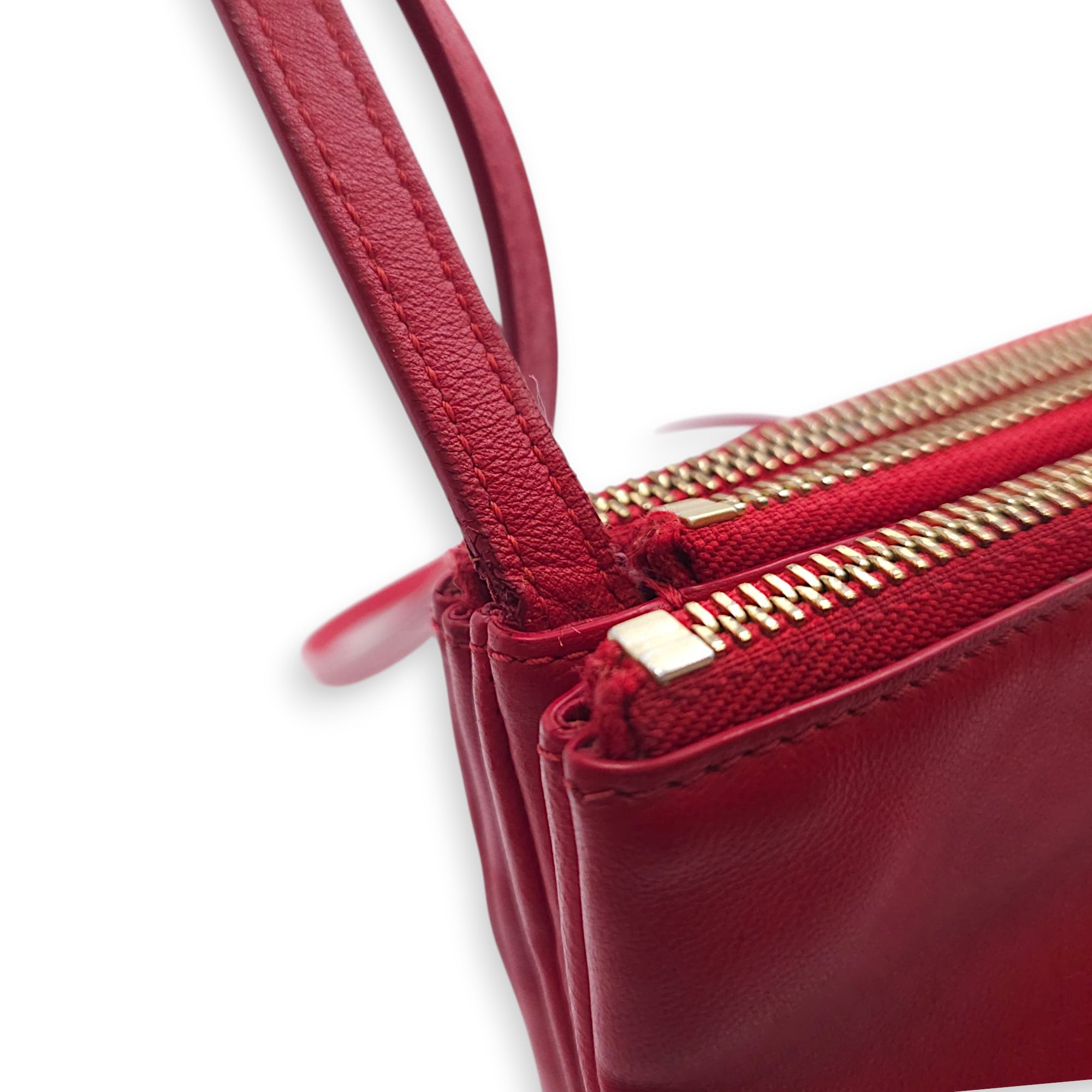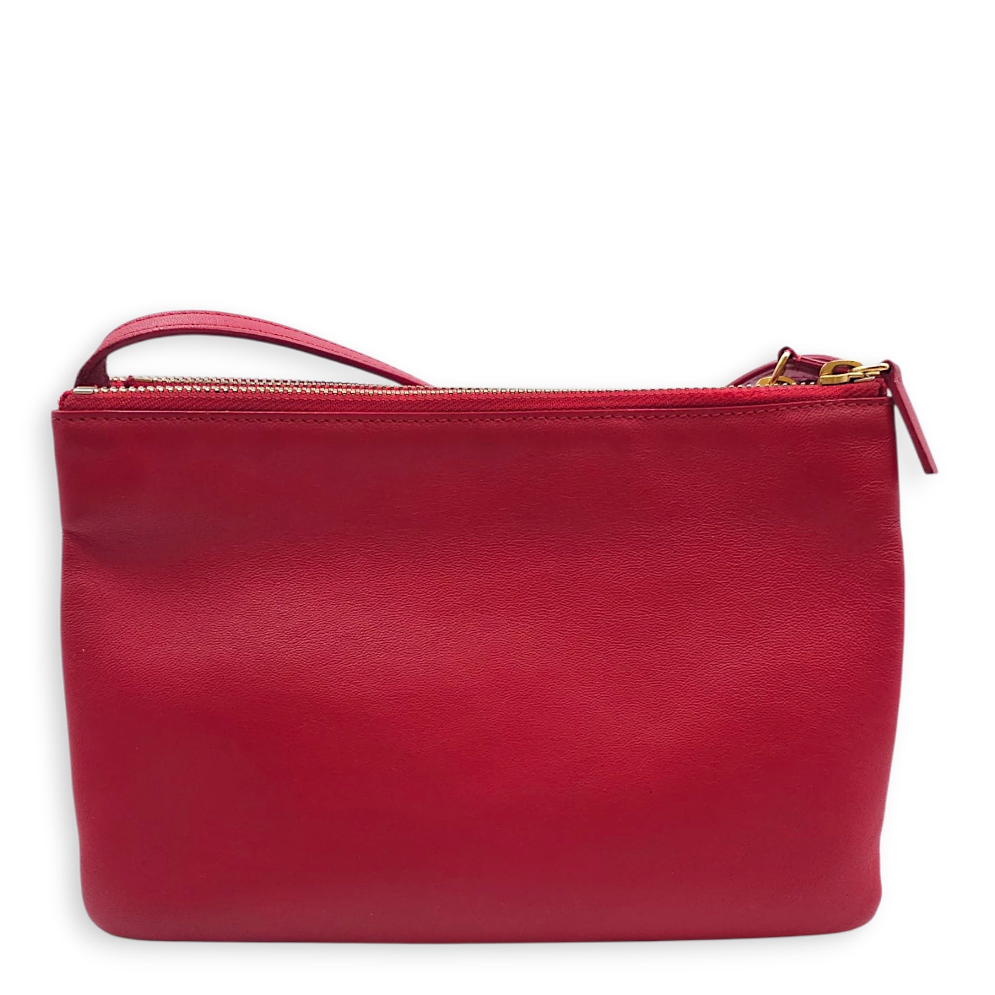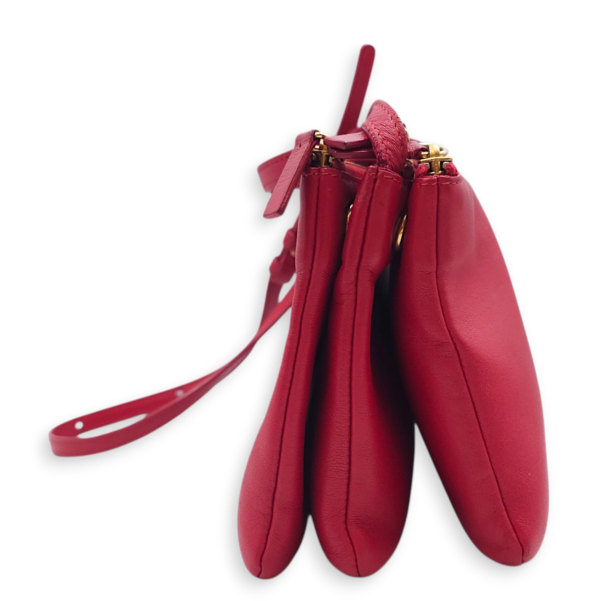 Trio Red Pouch with Strap in Calfskin, Gold hardware