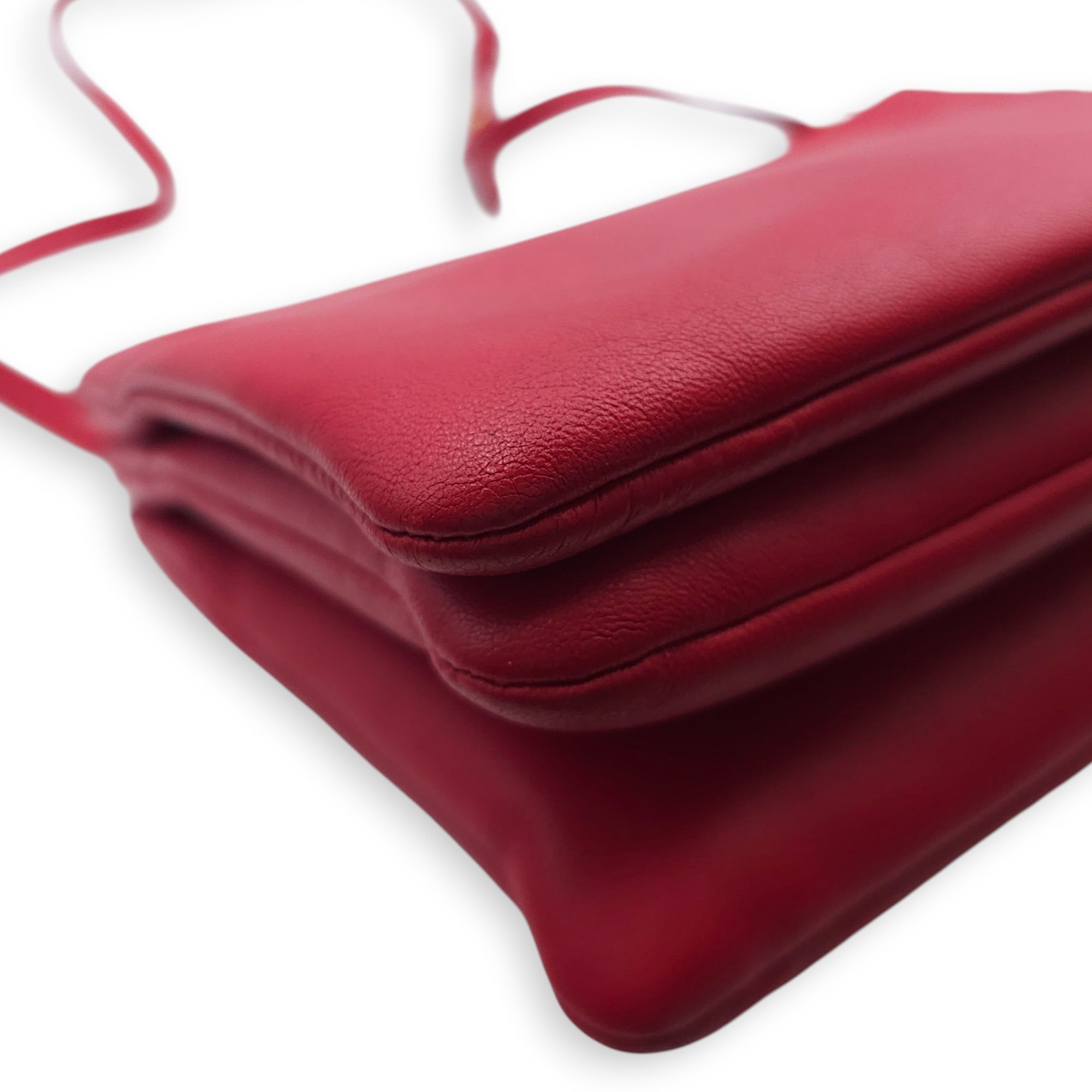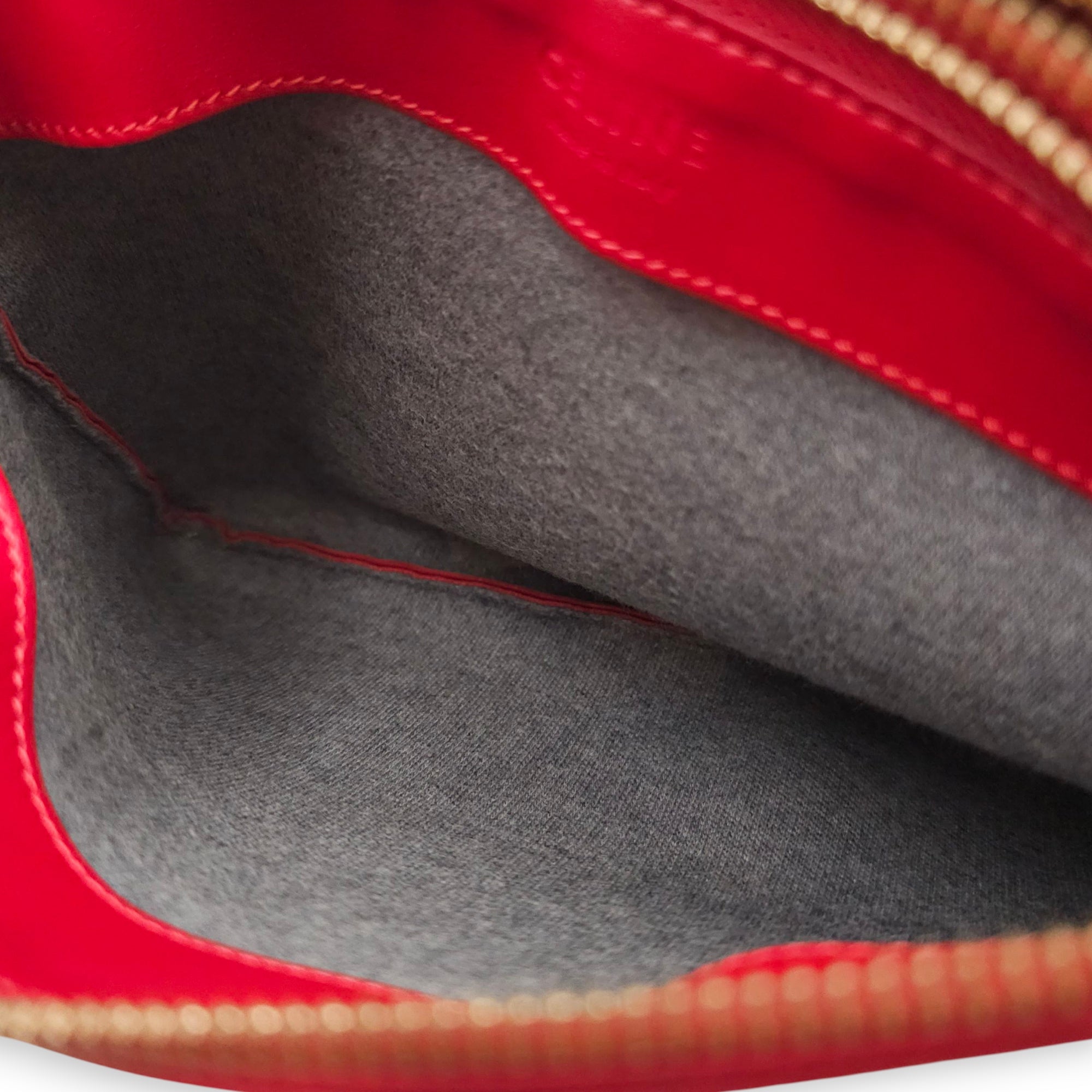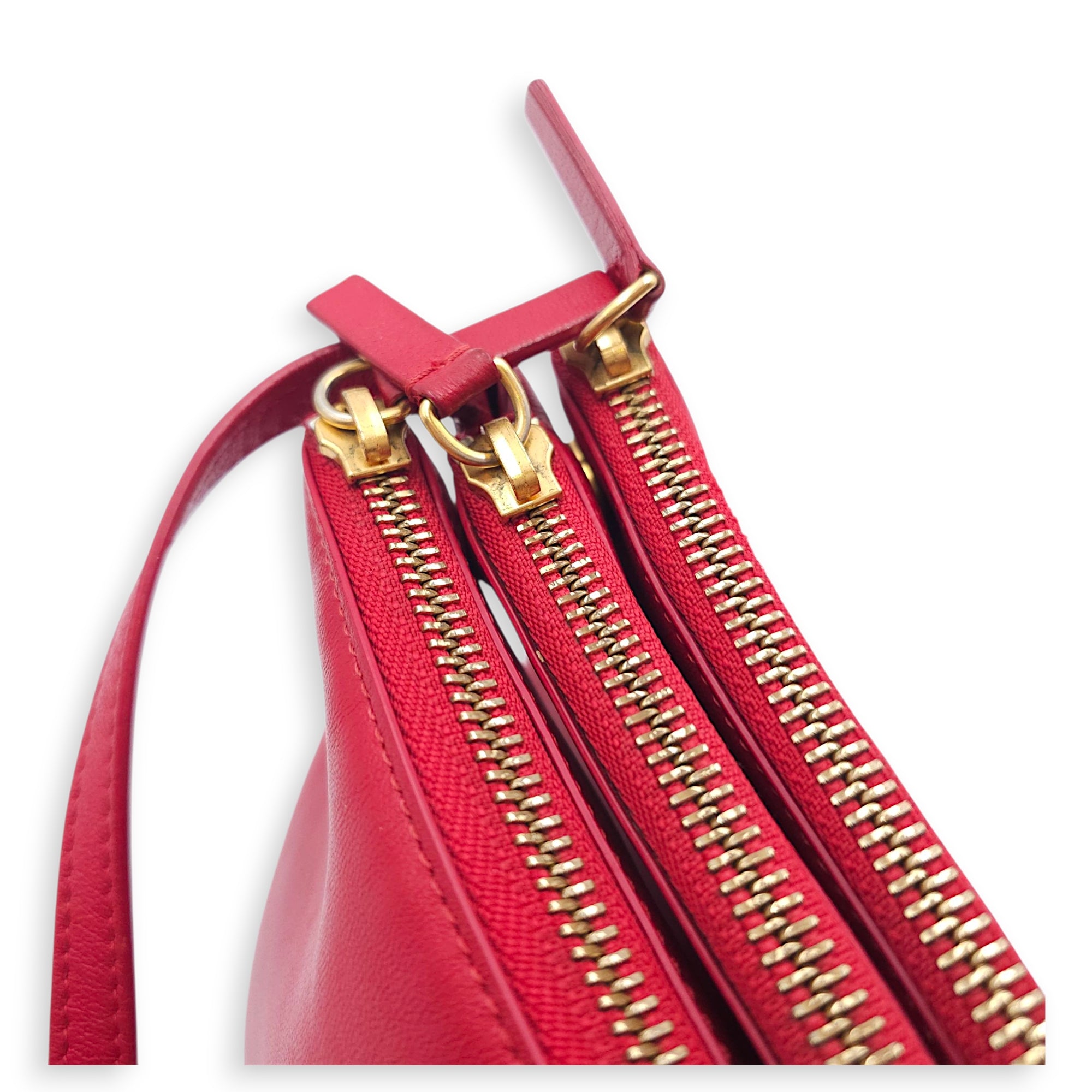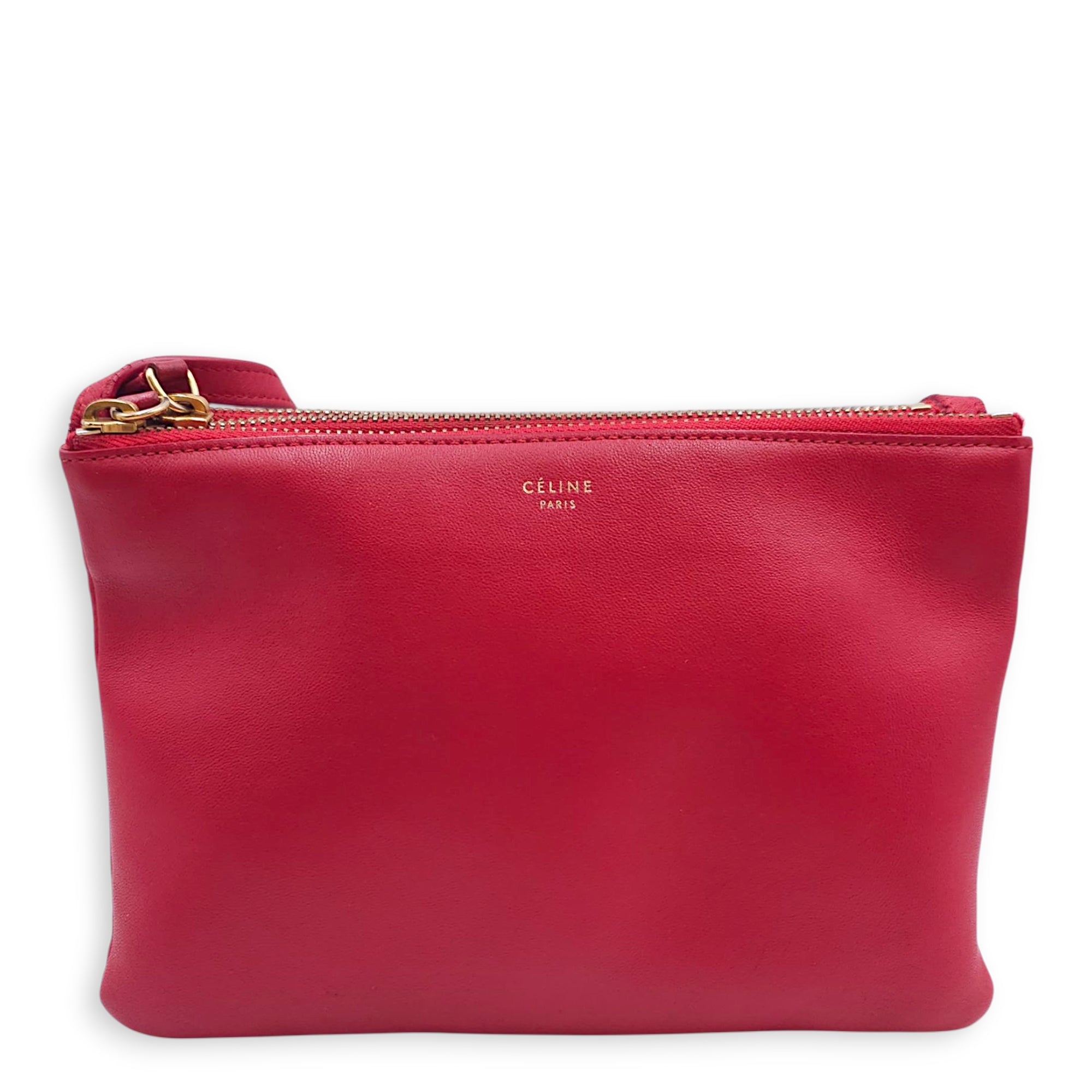 Trio Red Pouch with Strap in Calfskin, Gold hardware