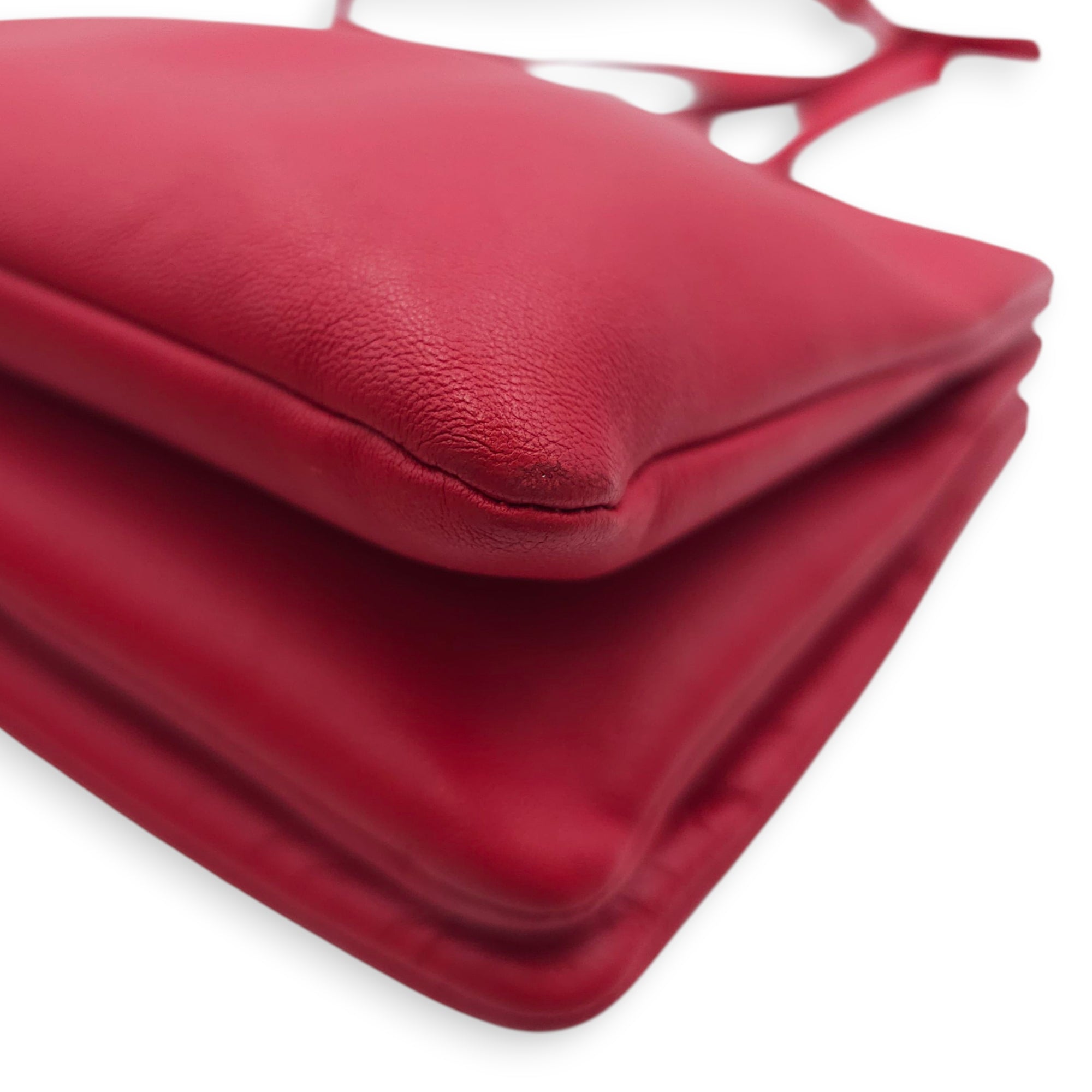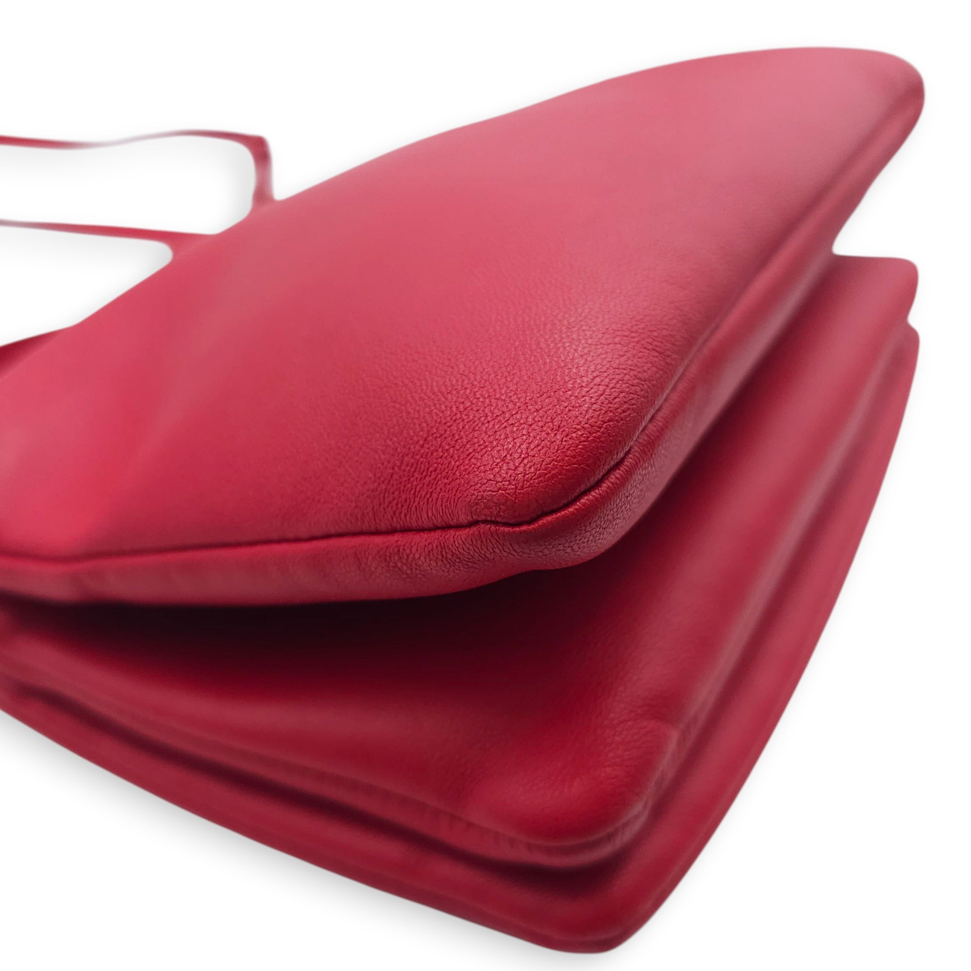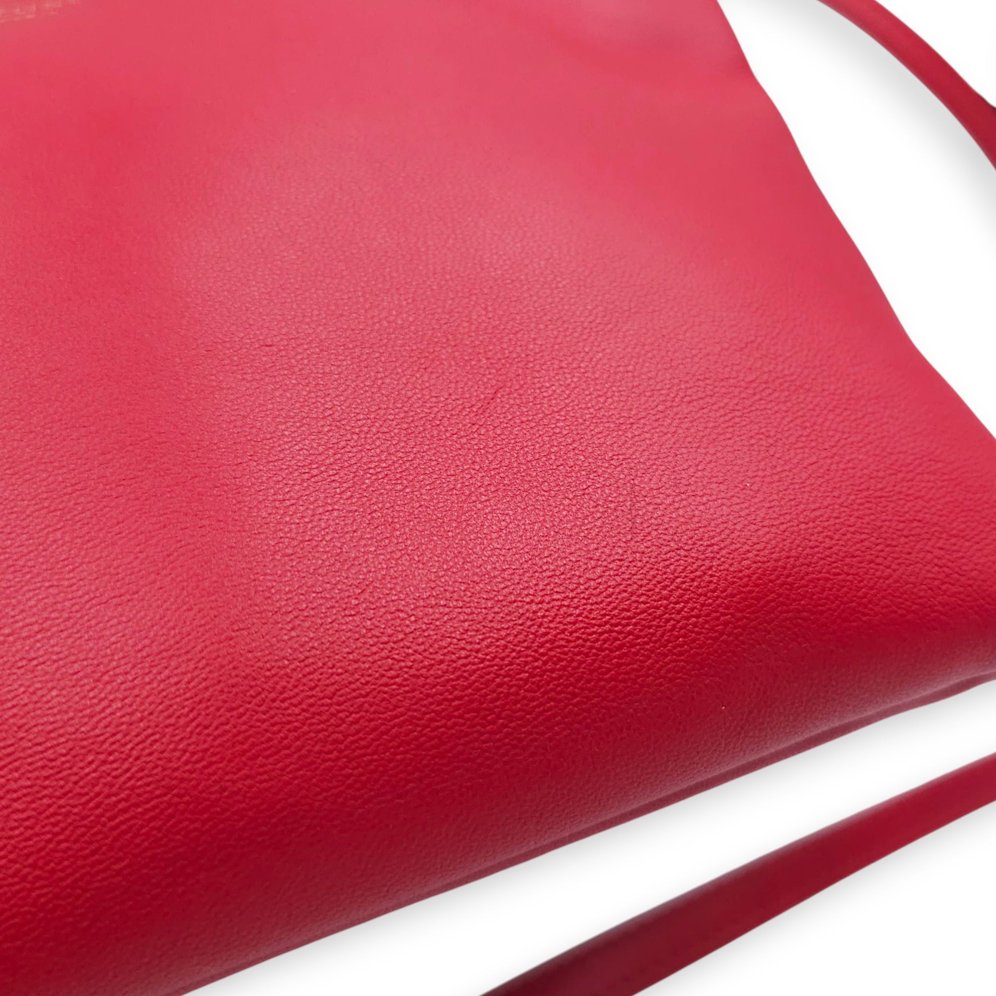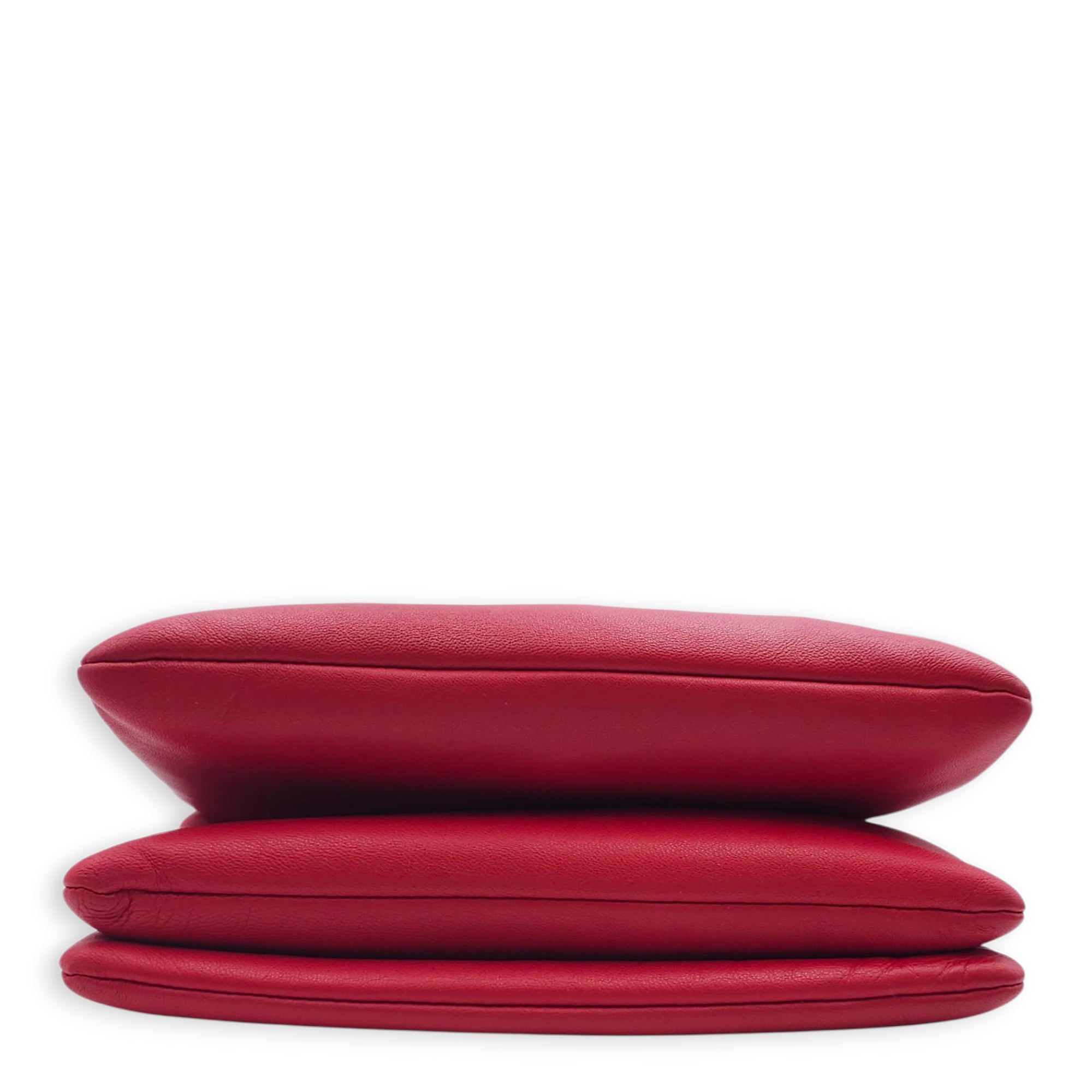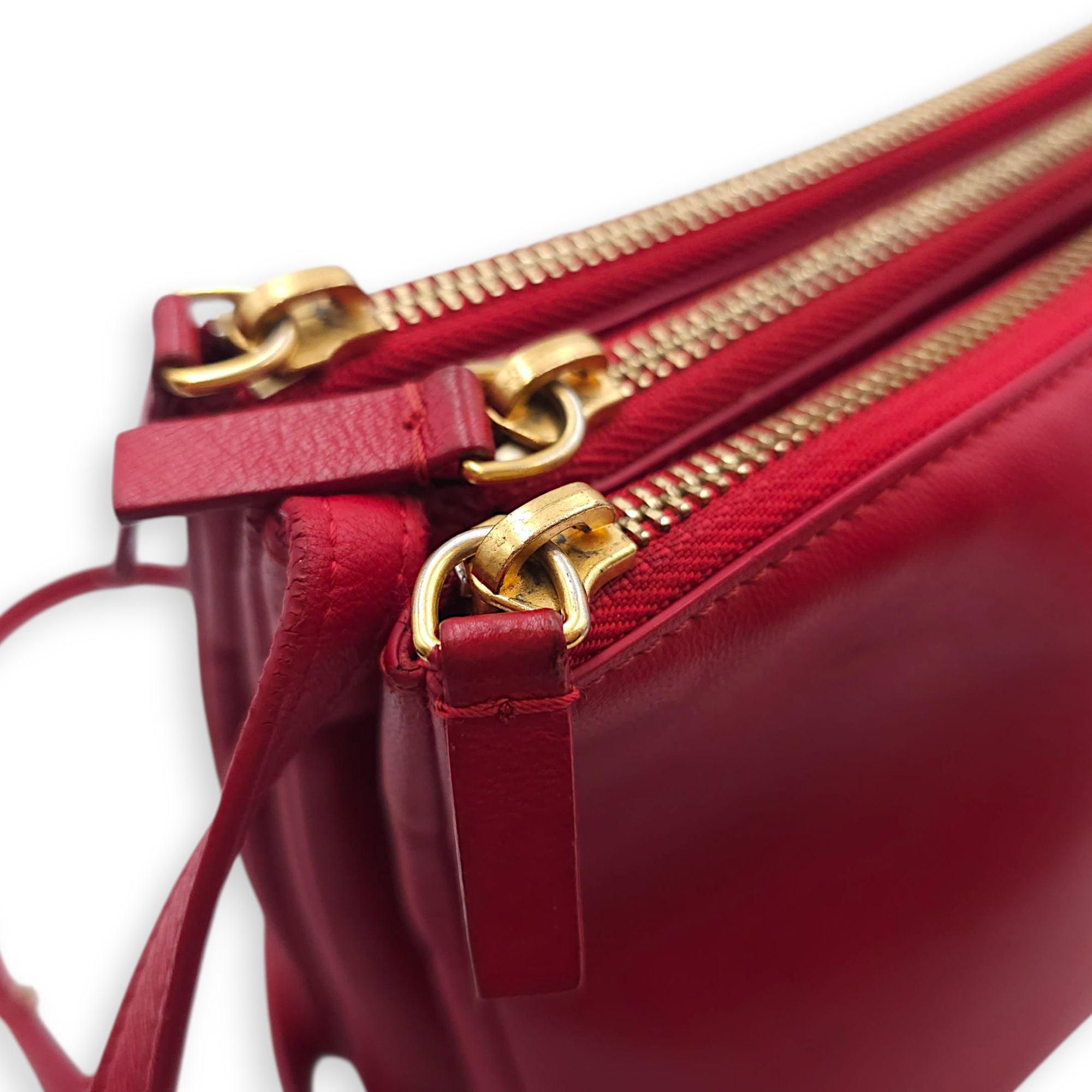 Trio Red Pouch with Strap in Calfskin, Gold hardware